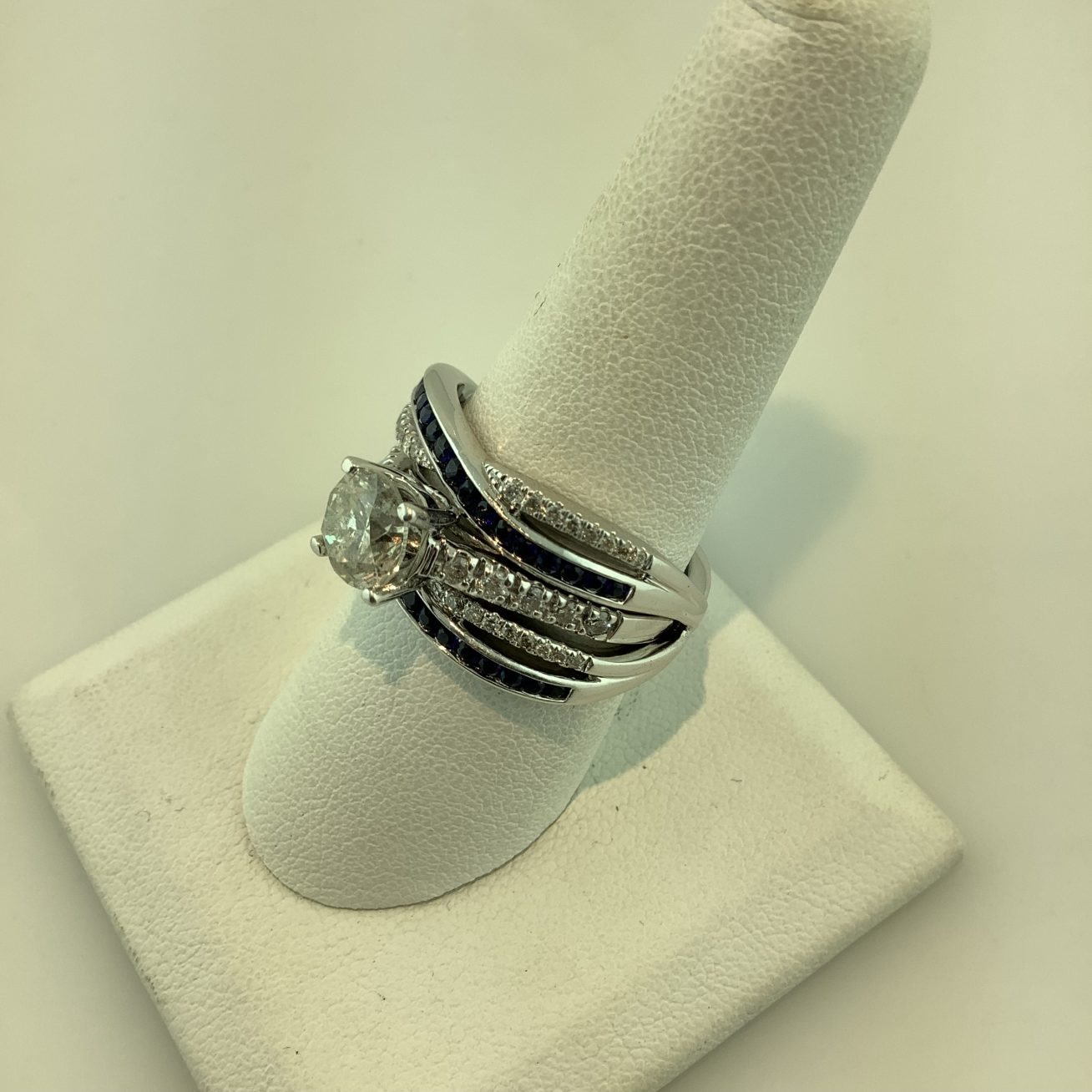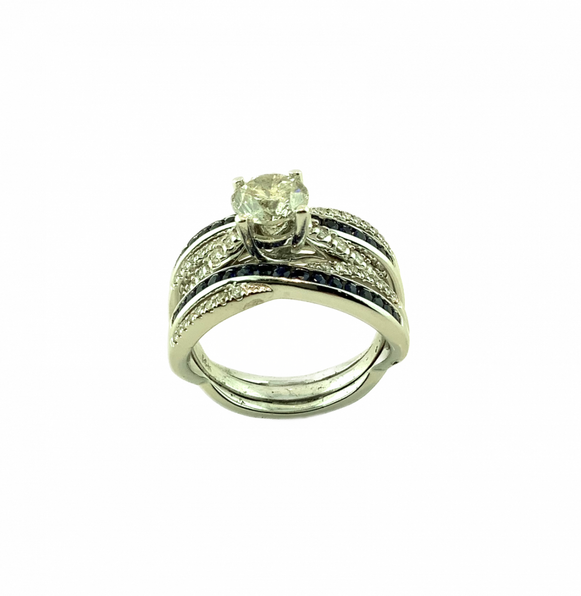 1.25 Round center Diamond with rows of Sapphires and Diamonds in White Gold