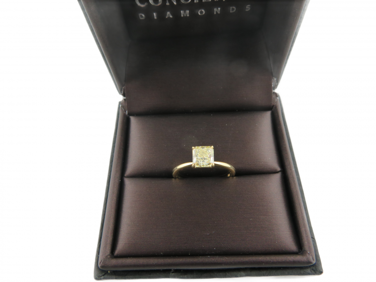 1.31 Square Modified Brilliant Yellow Diamond set in 18kt Yellow gold