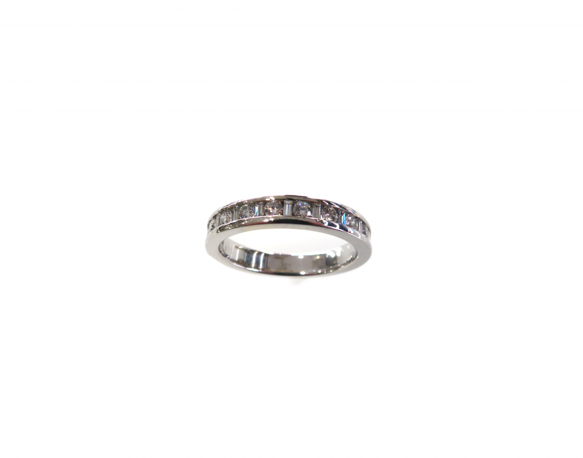 14kt White gold channel anniversary band with baguettes and round diamonds