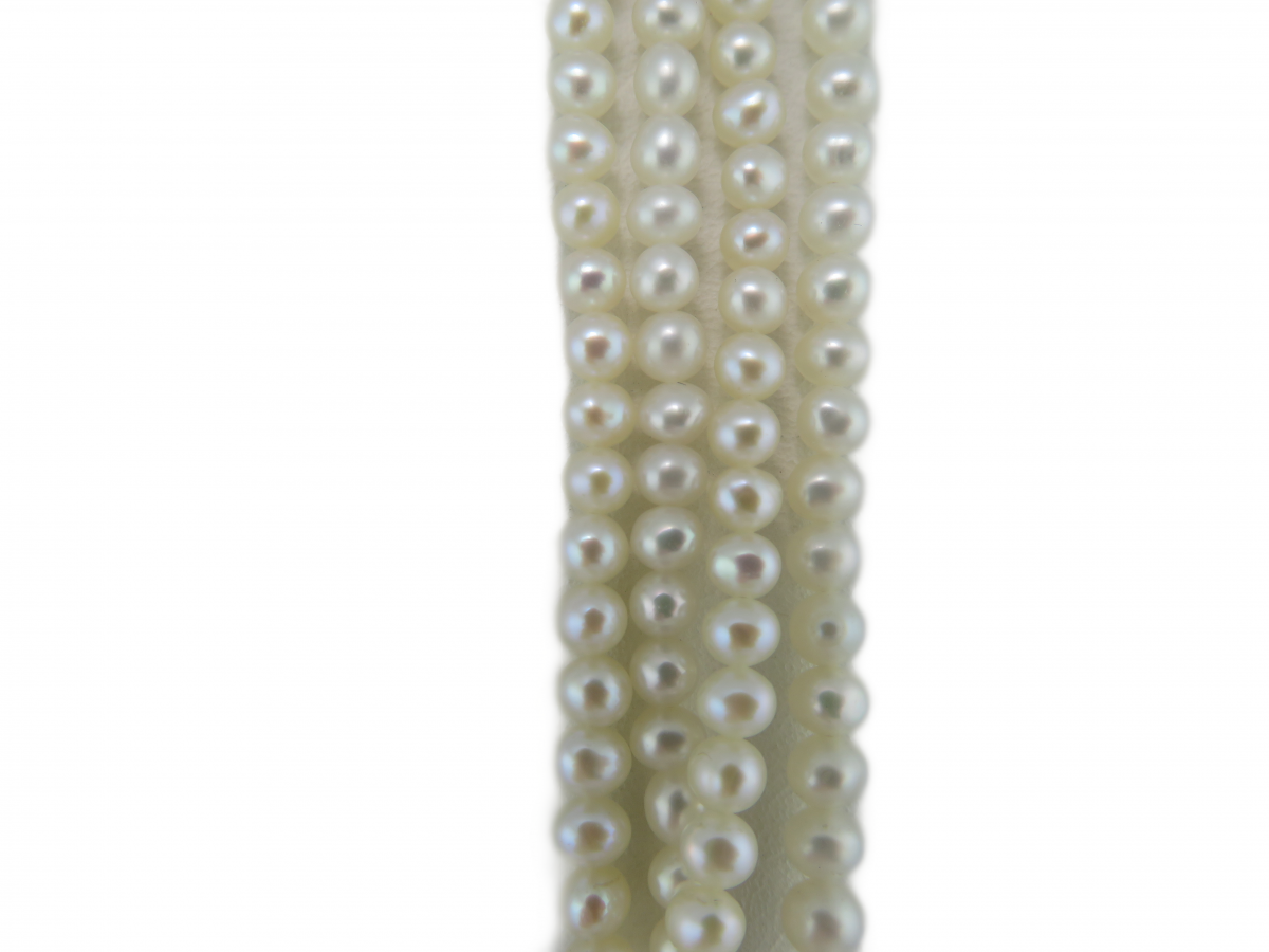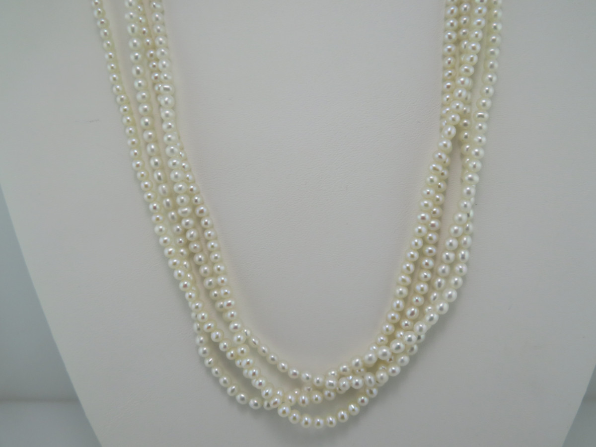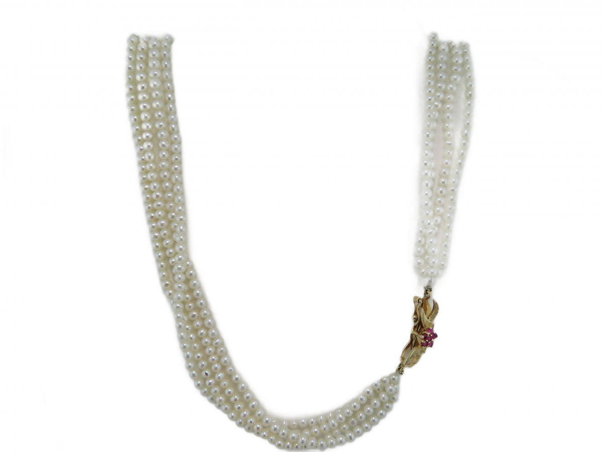 4 strands of seed pearls with a decorative hidden clasp with Rubies
