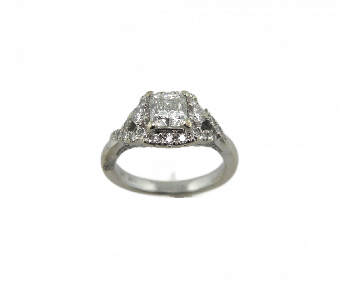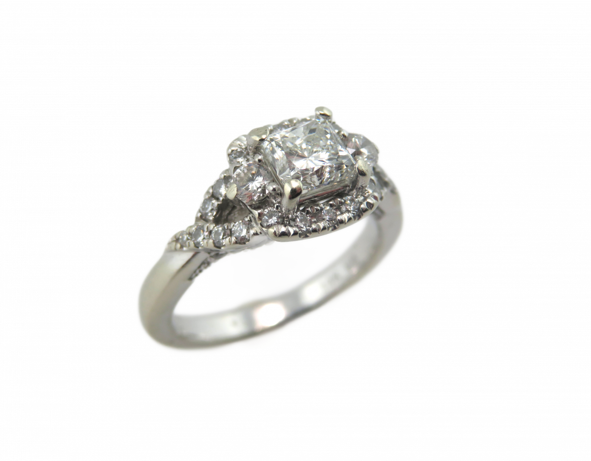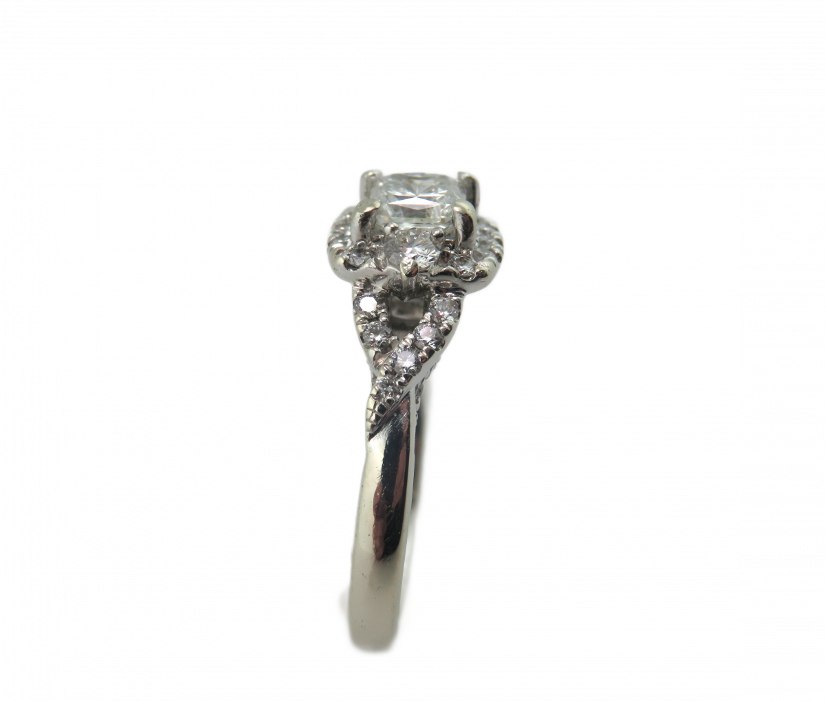 .72 “Radiant Star” diamond in Halo and diamond cross over white gold ring