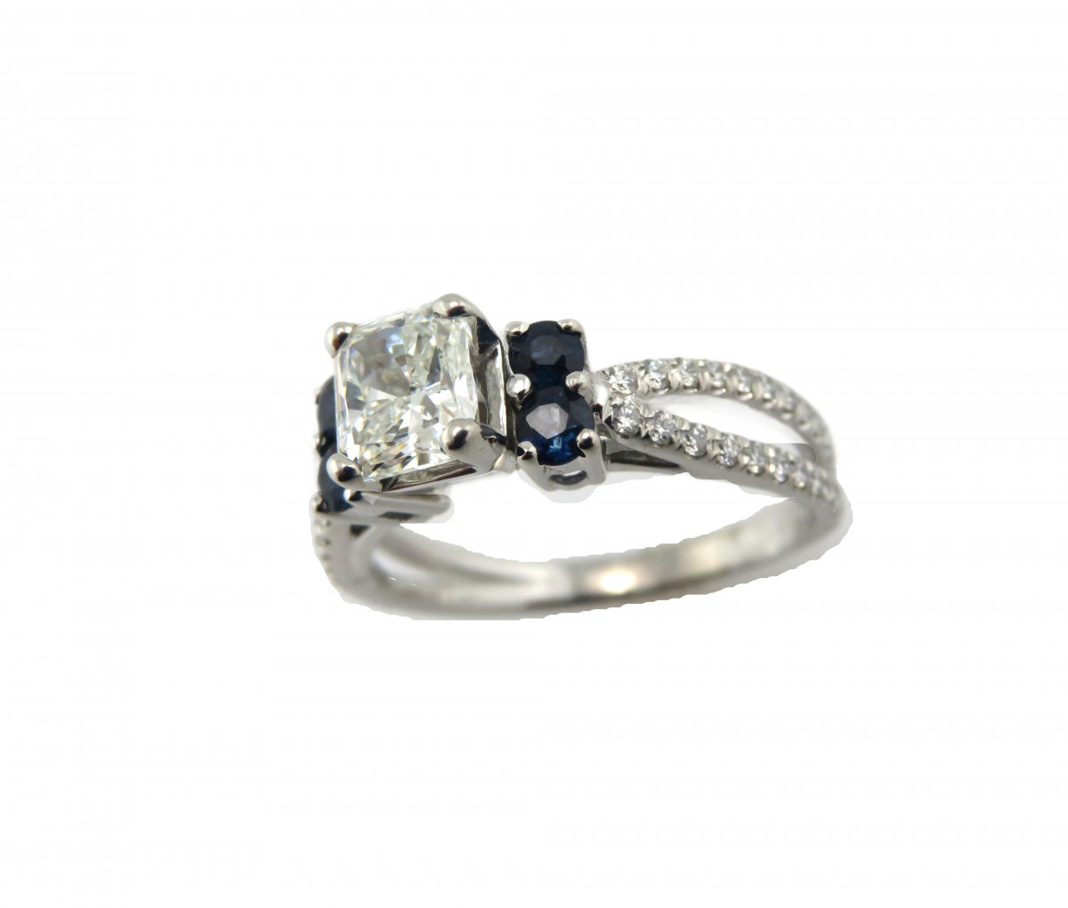 • Post status ".92 Radiant cut Diamond with 40 side Diamonds and 4 Sapphires in White Gold" on Twitter