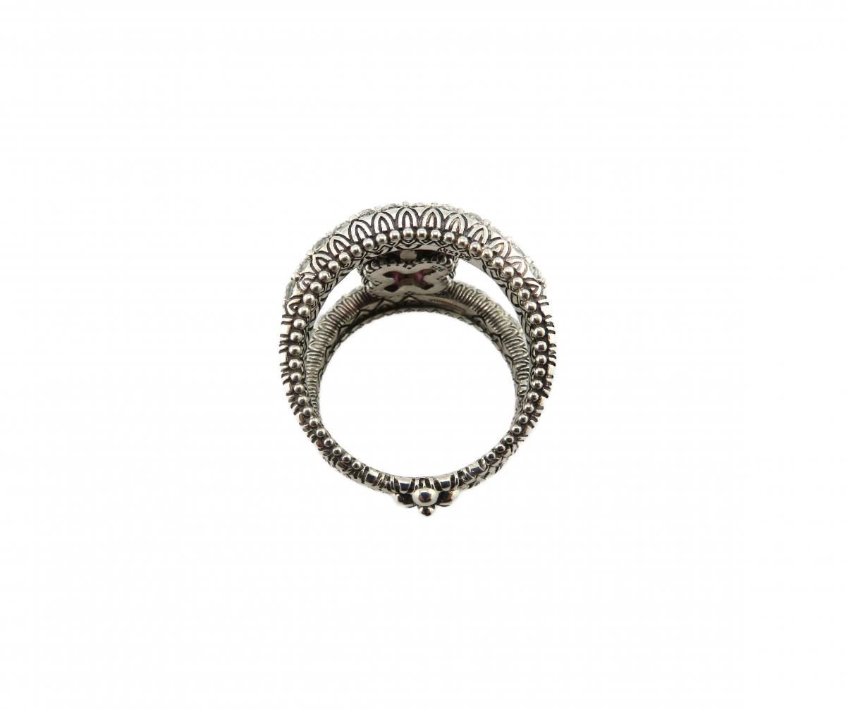 • Share "Barbra Bixby White Topaz and Rhodilite Garnet Silver ring with 18kt accents" on LinkedIn