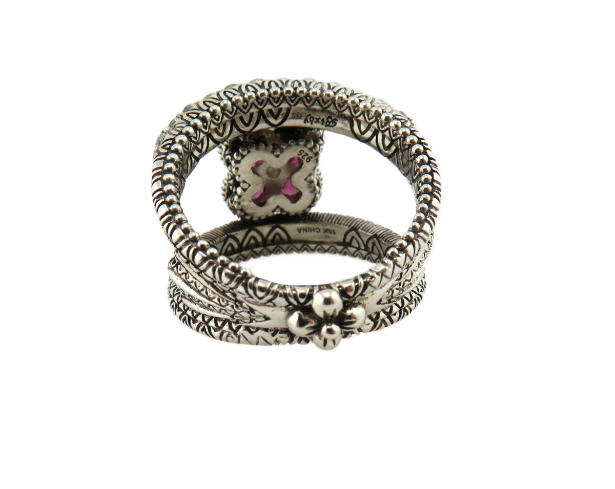 Barbra Bixby White Topaz and Rhodilite Garnet Silver ring with 18kt accents