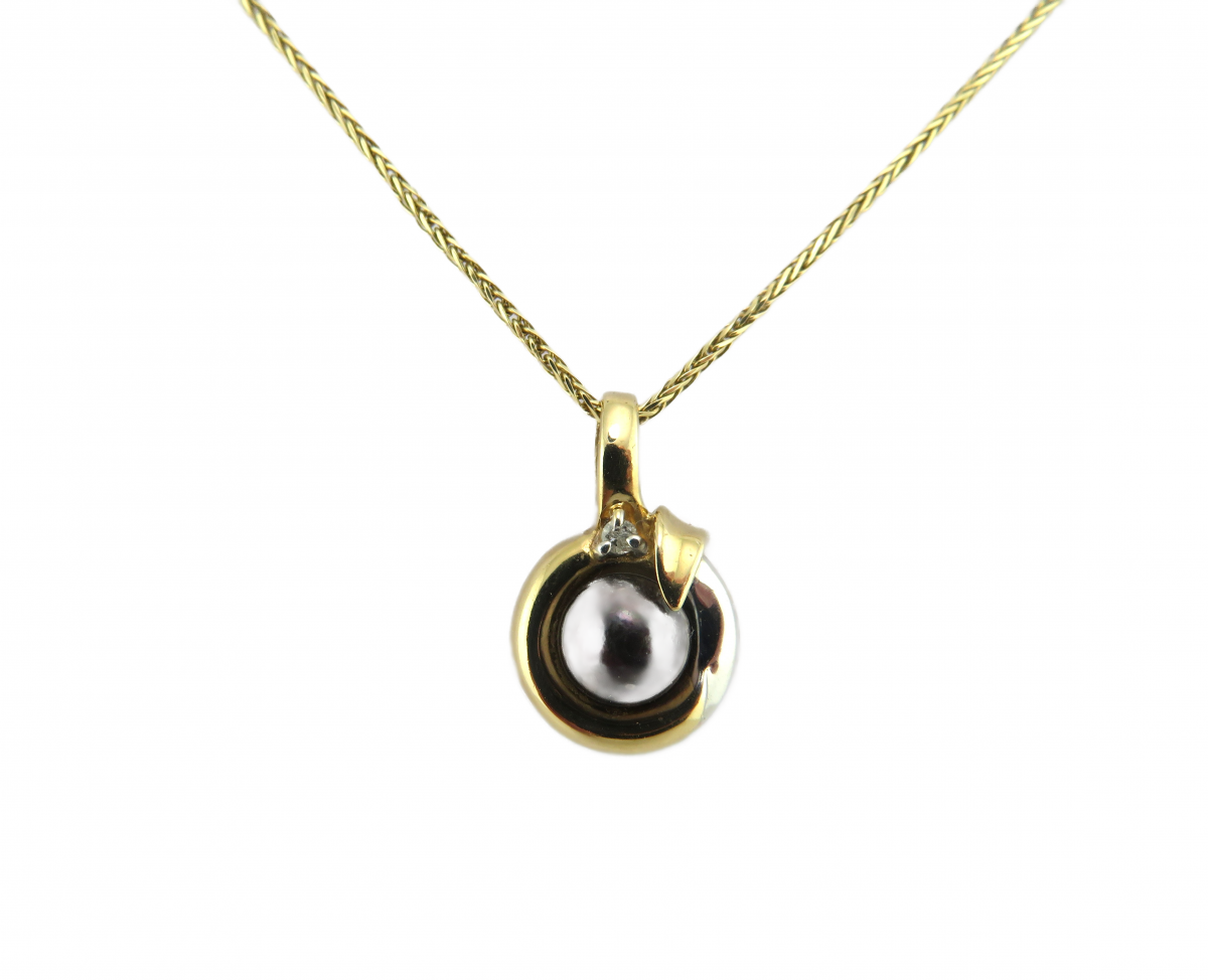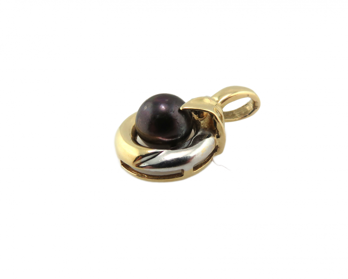 Home  Necklaces  Gold  Black Pearl set of pendant and earrings in Two Tone gold