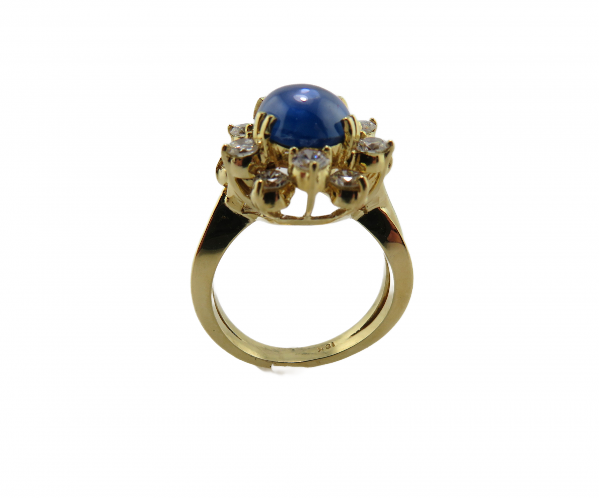 - Share "Cabochon cut Oval Blue Sapphire surrounded by 12 top quality diamonds in 18kt ring" on LinkedIn