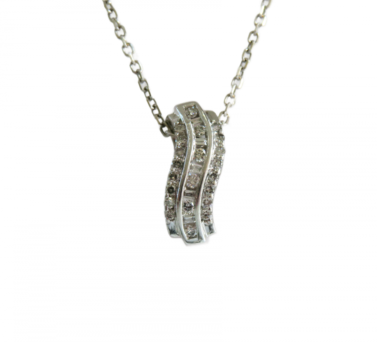 - Share "3 row diamond pendant with round and baguette in 14kt White gold" on LinkedIn