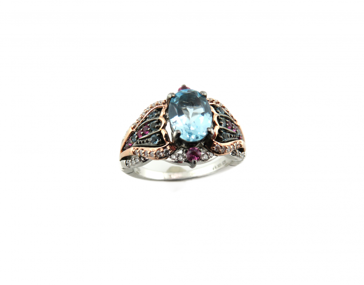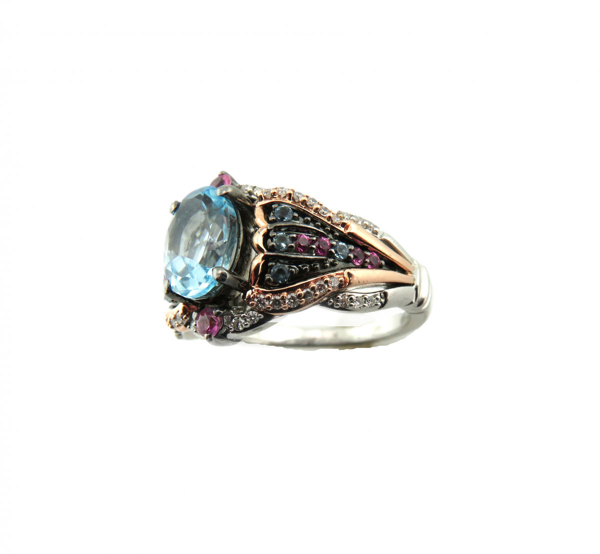 Blue Topaz, and Pink Sapphires. 10 kt Rose gold