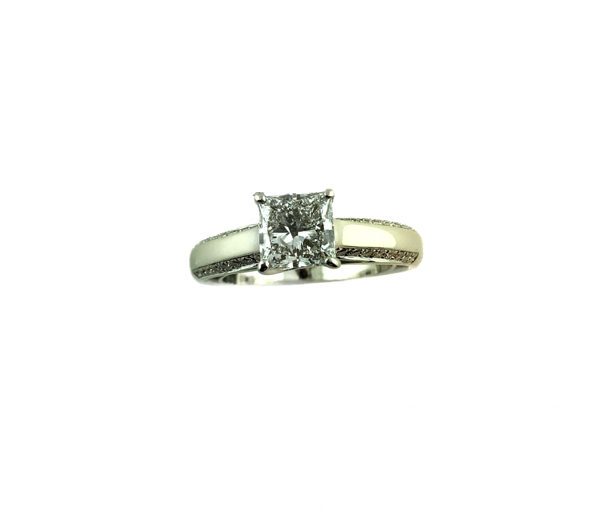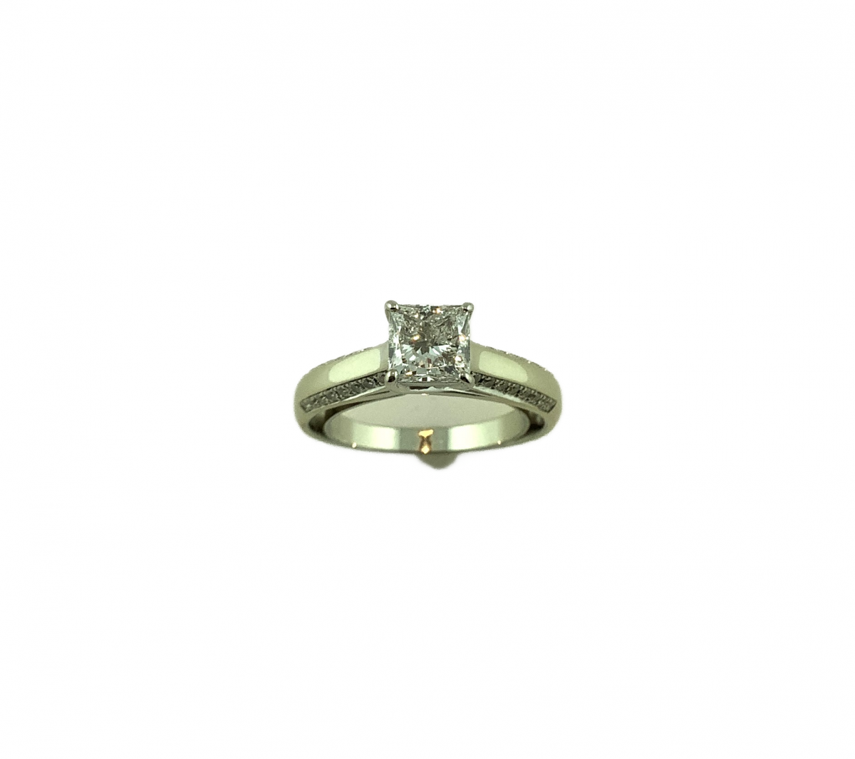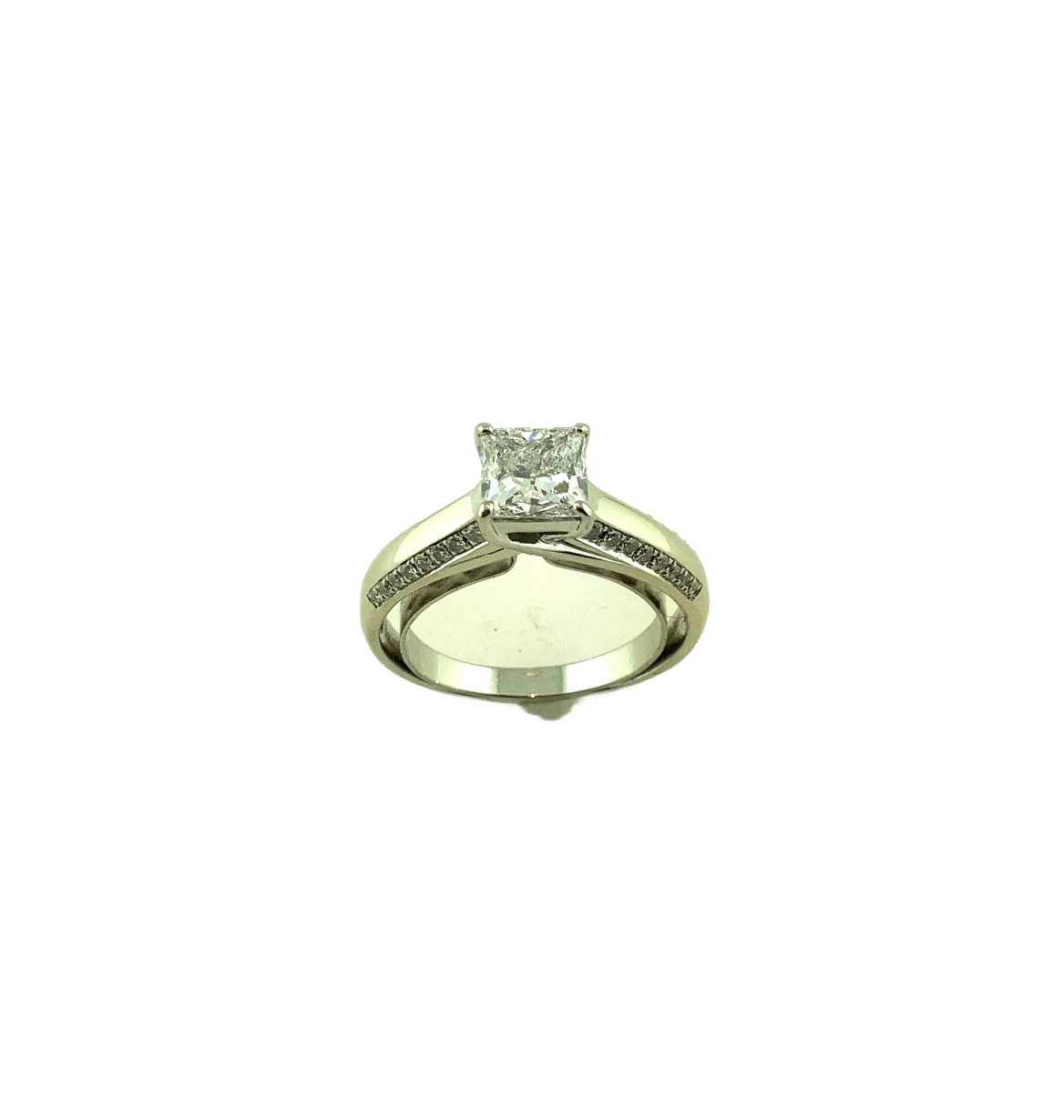 Engagement ring 1.22 Princess Cut diamond with accent diamonds down all 4 sides
