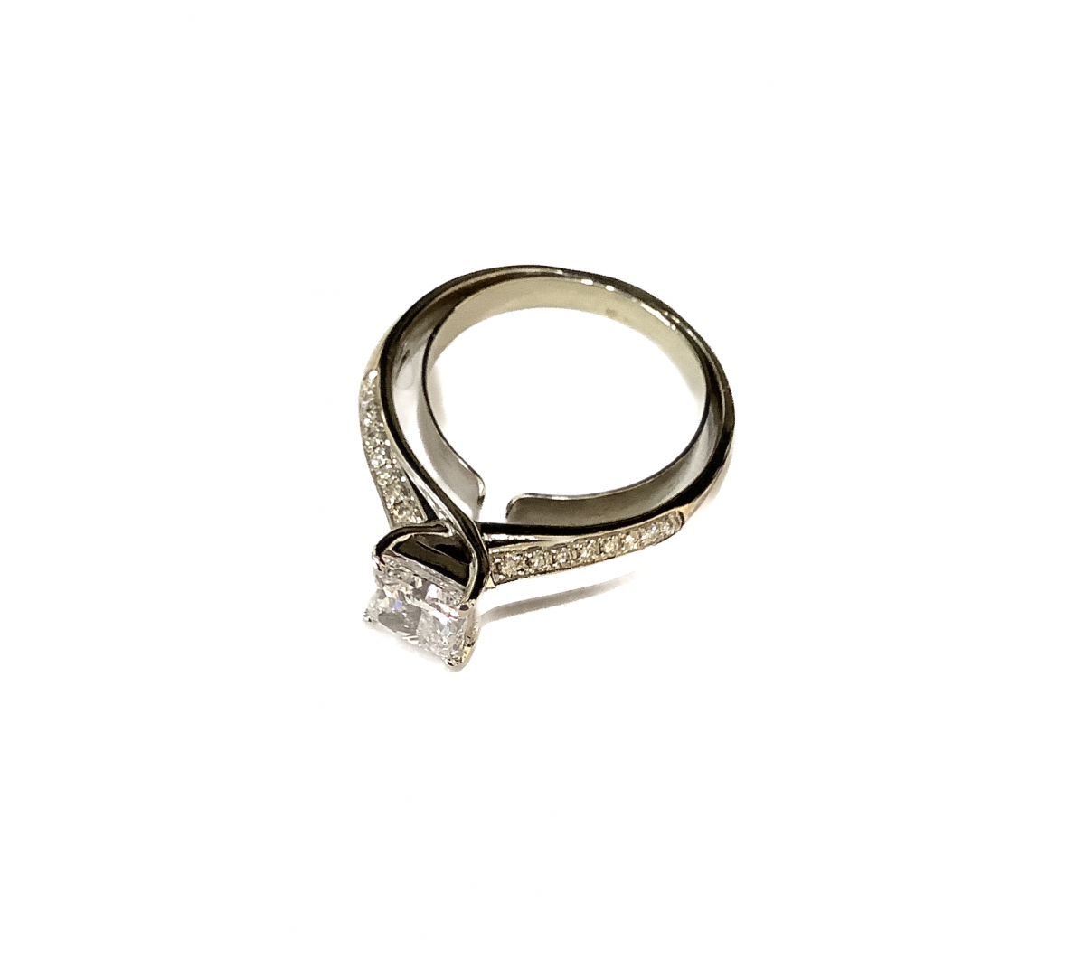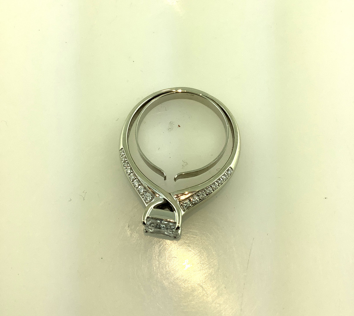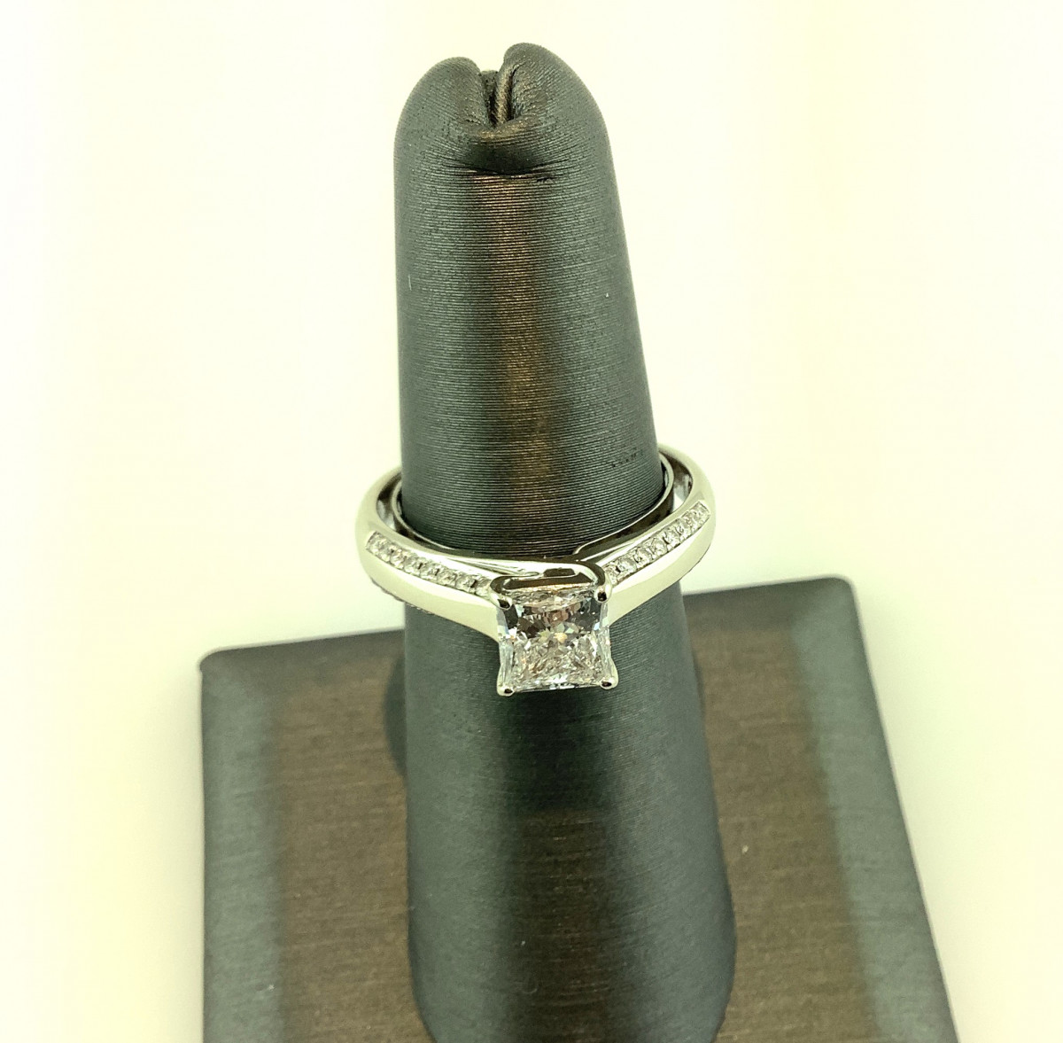 Engagement ring 1.22 Princess Cut diamond with accent diamonds down all 4 sides