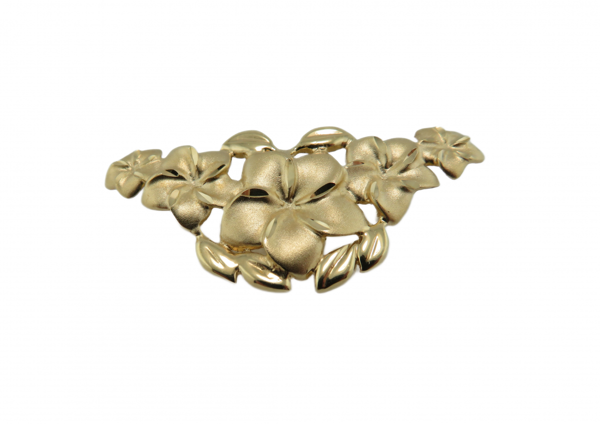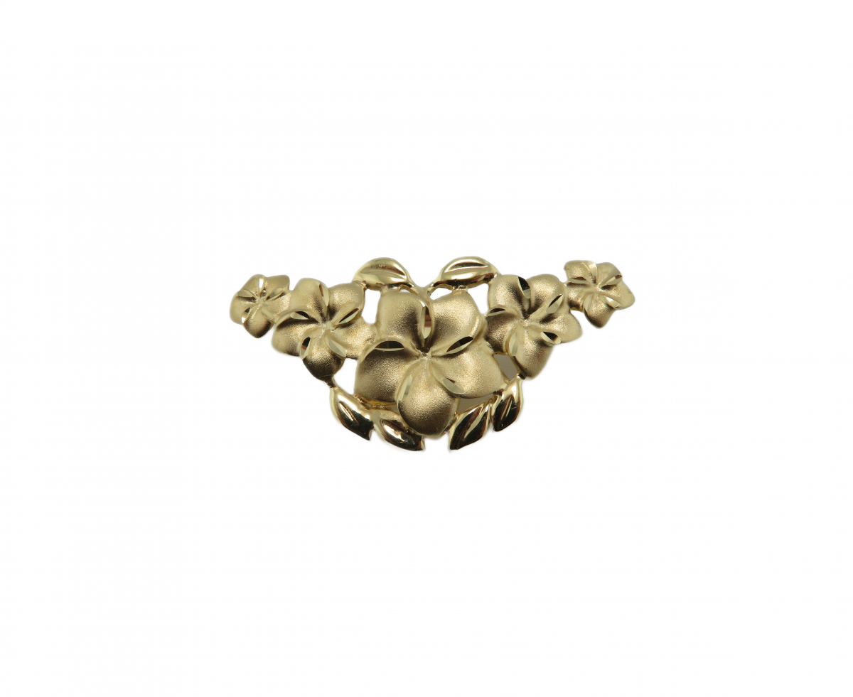 Hawaiian Plumeria Flowers in 14kt Yellow gold Pendant Slide