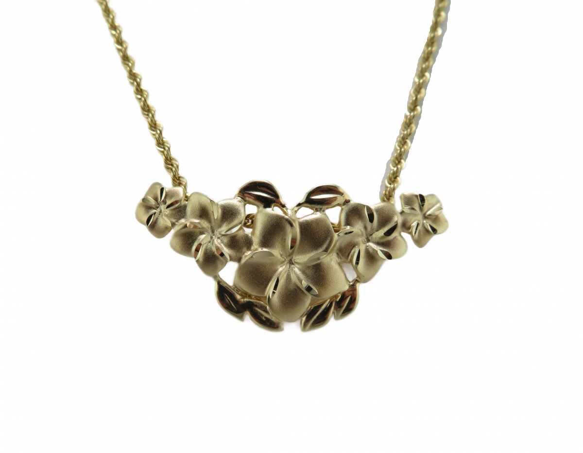 Home  Necklaces  Gold  Hawaiian Plumeria Flowers in 14kt Yellow gold Pendant Slide