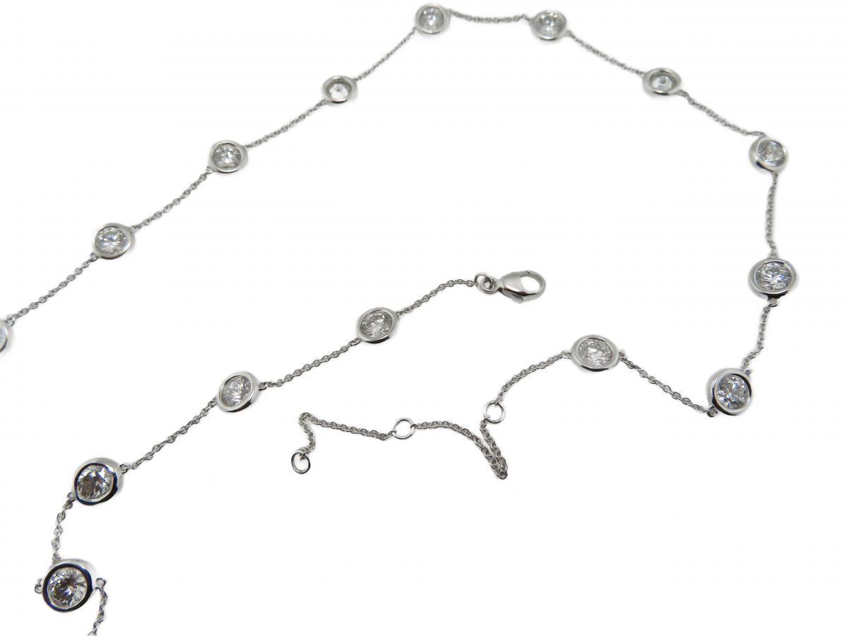 Lab Diamond Station necklace in white gold with 20 diamonds