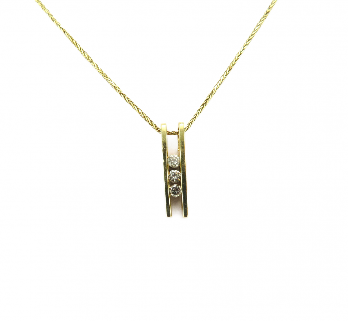 “Ladder” Pendant with 3 diamonds in Yellow gold