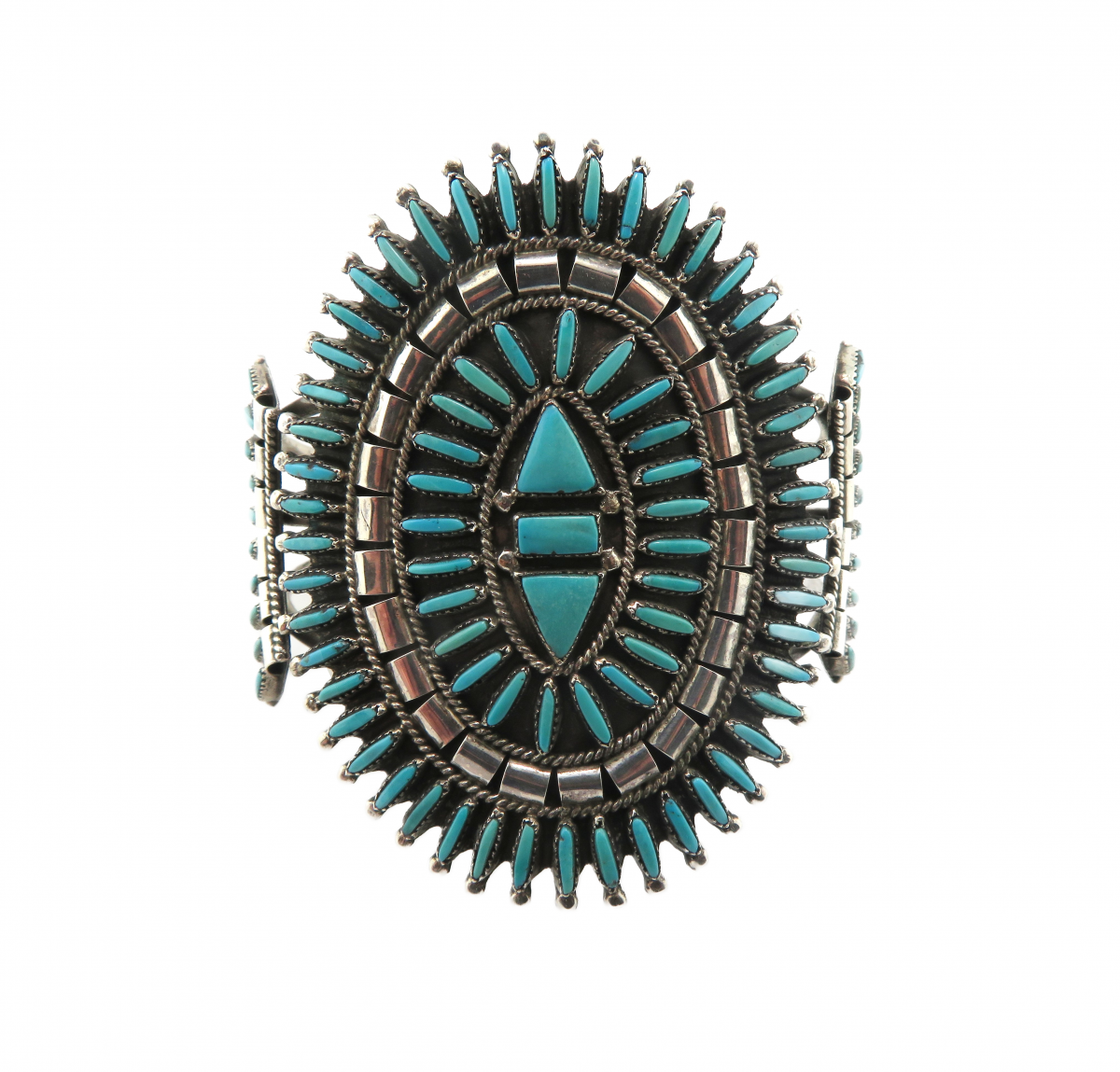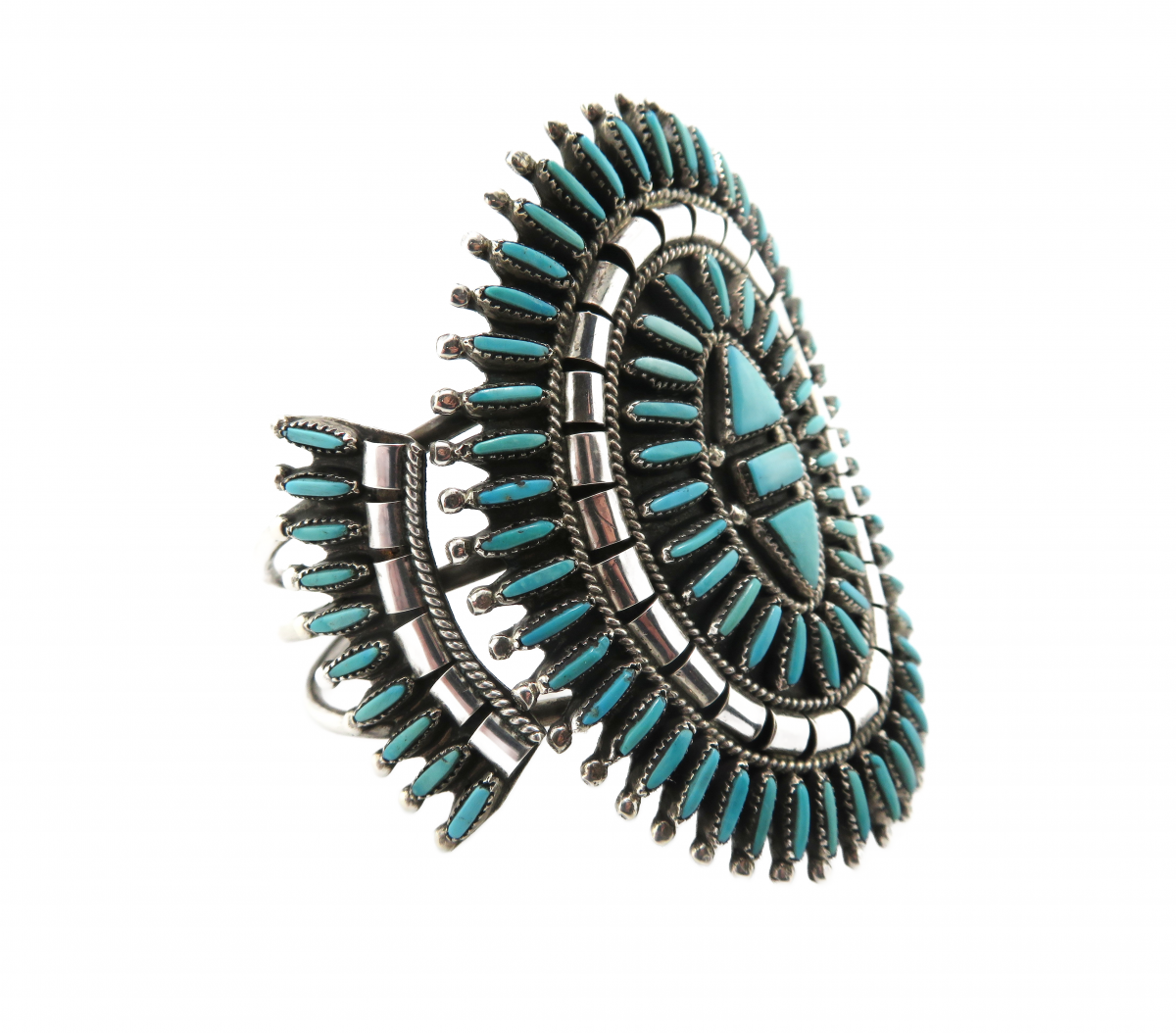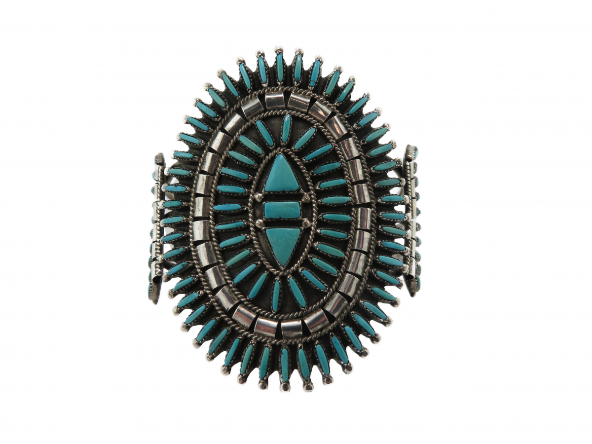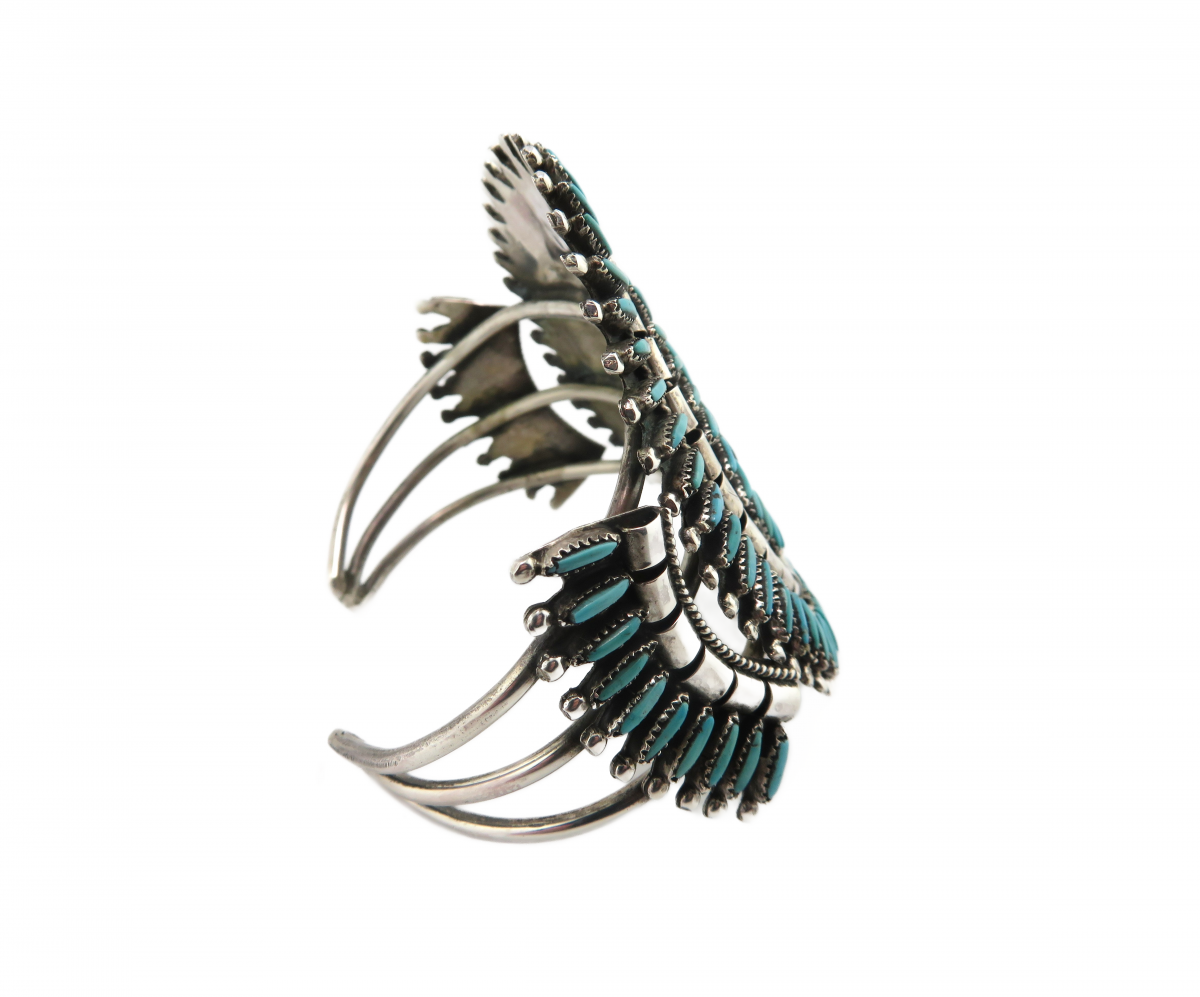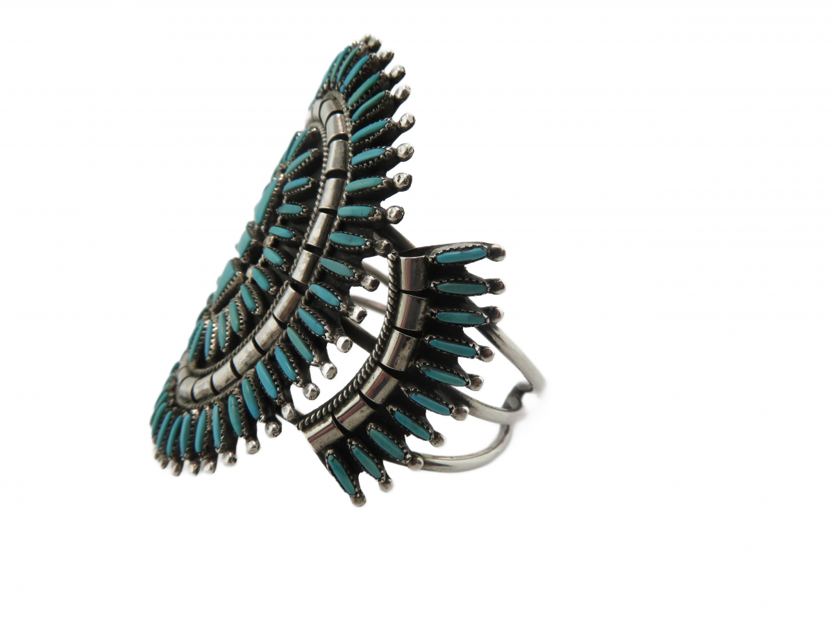 Large Zuni Needle Point Turquoise Cuff Silver bracelet