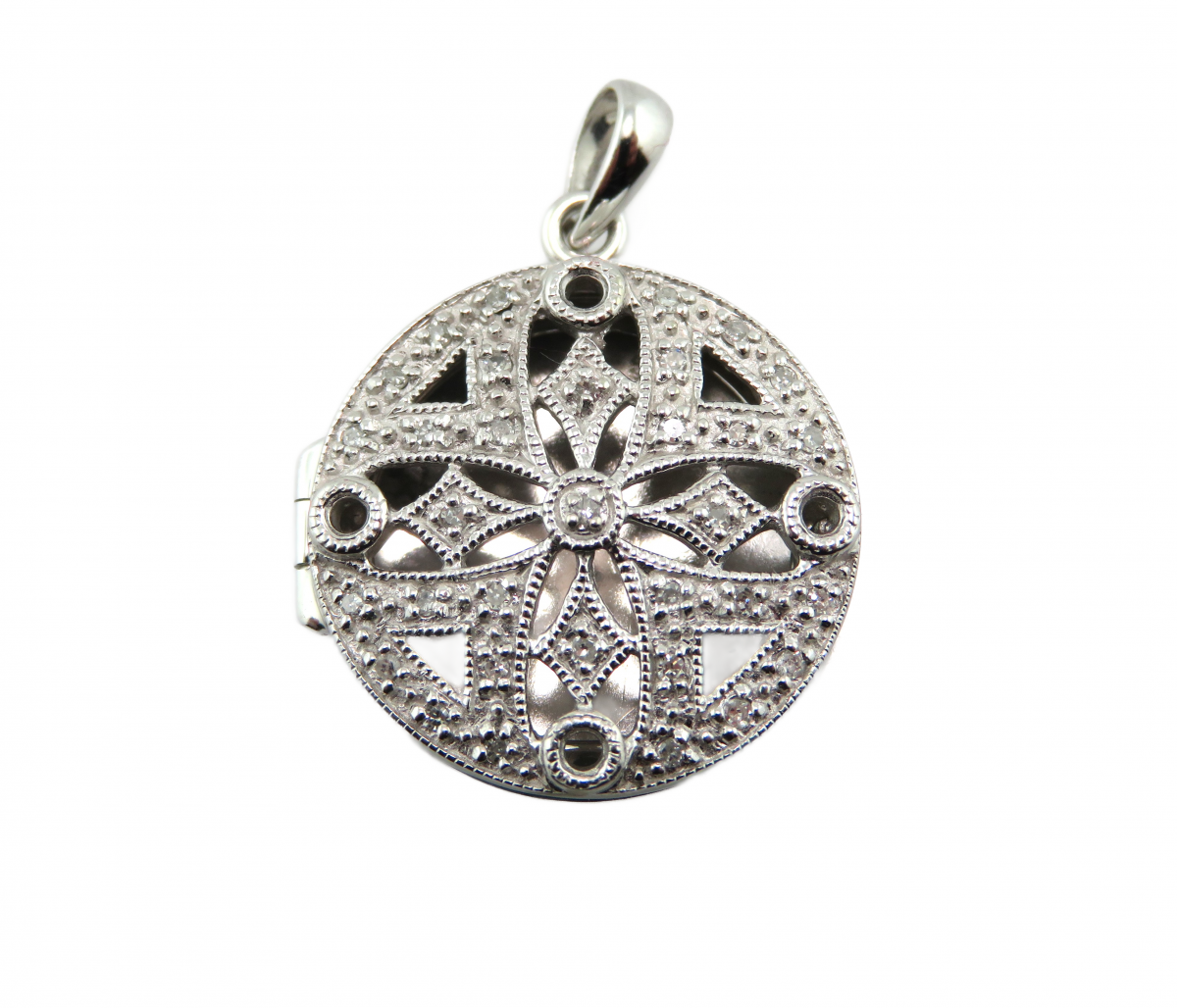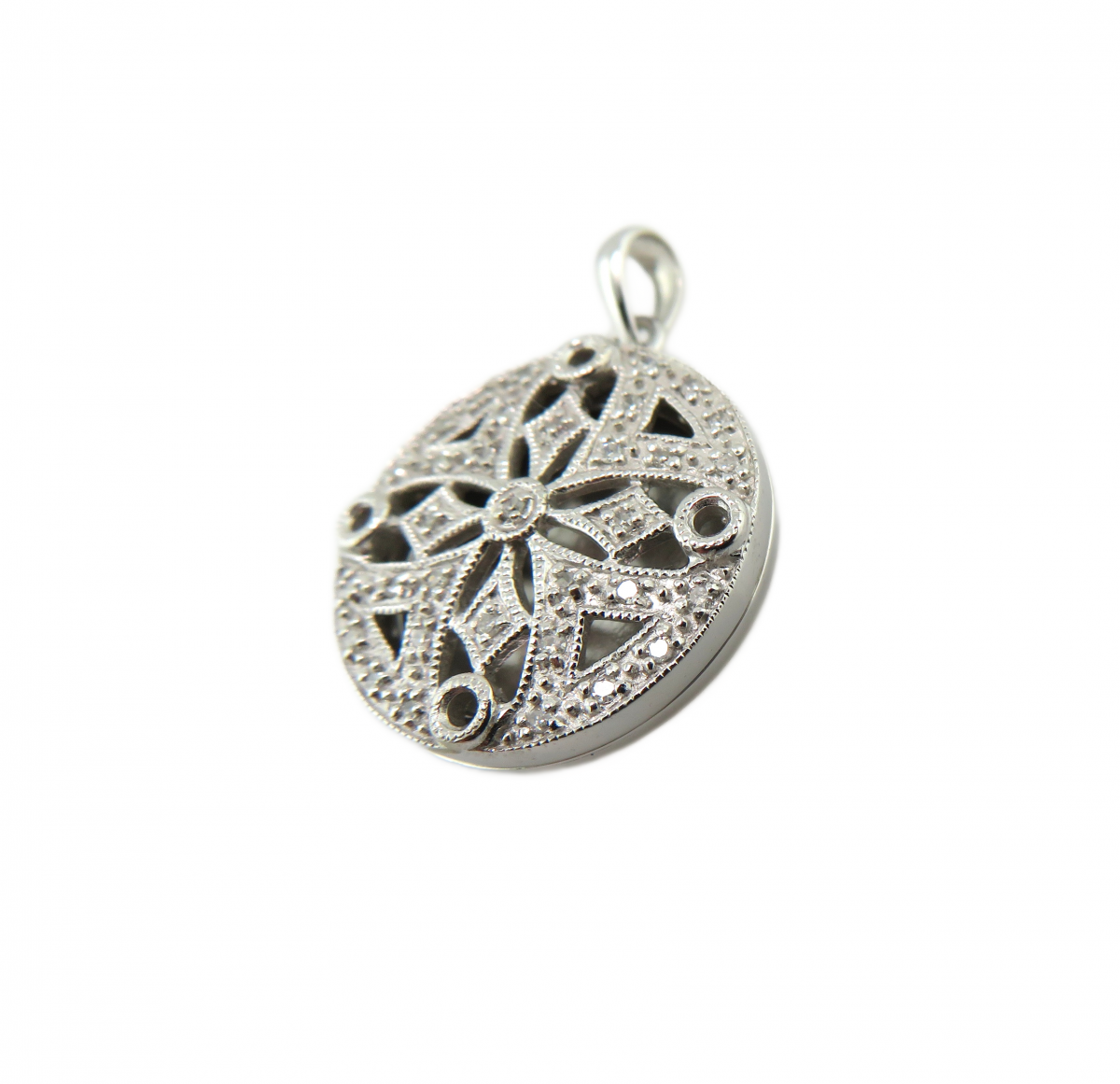 Home  Necklaces  Diamond  Locket or Aromatherapy , Vintage filigree style in white gold and diamonds