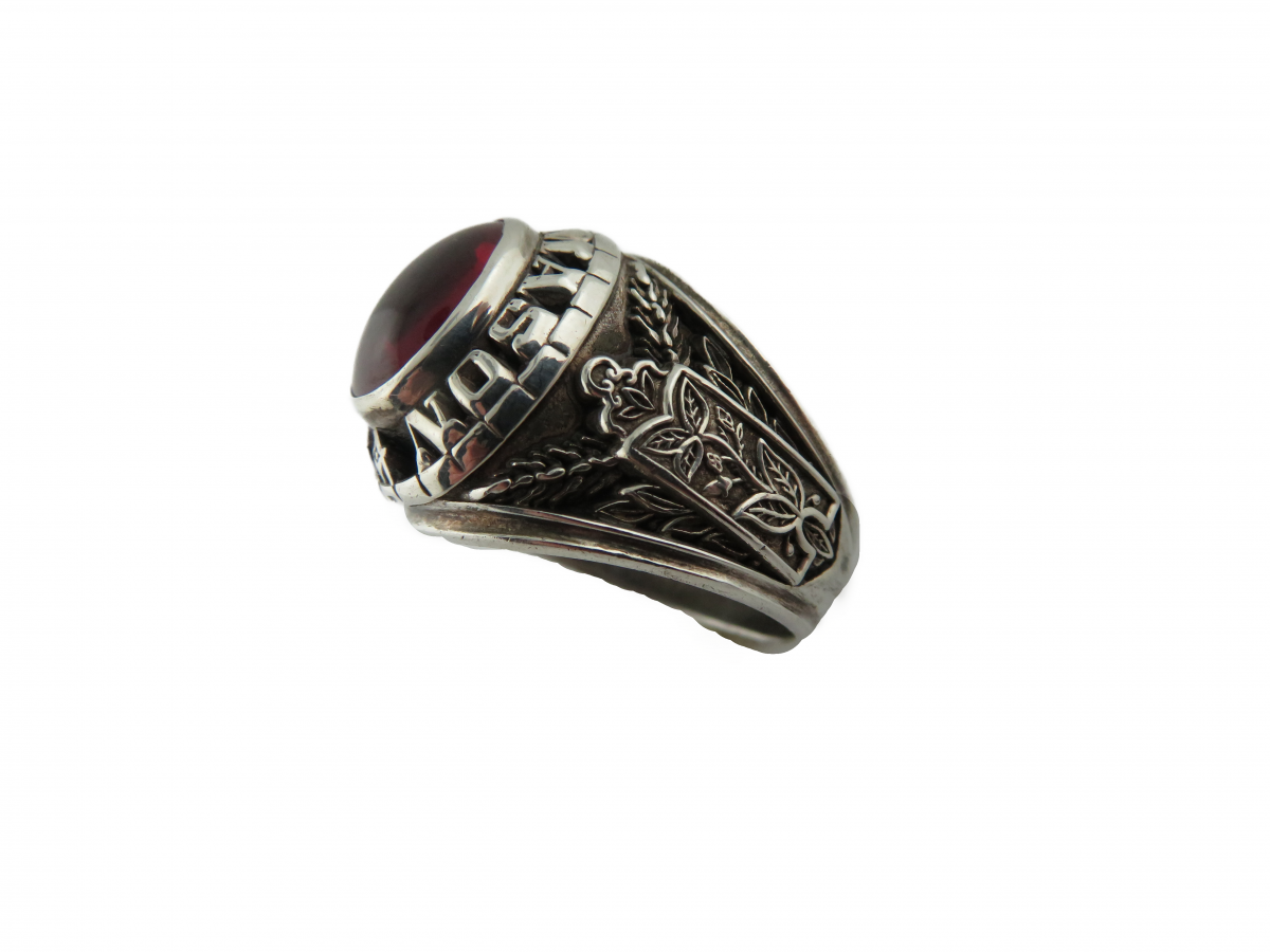 Master Mason ring in sterling silver set with Red center stone