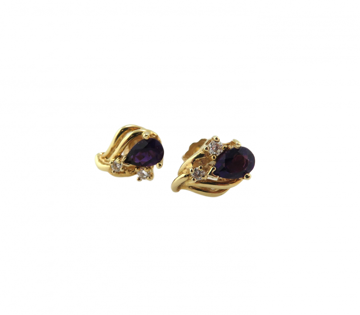 - Share "Pear shape Amethyst and diamond earrings in 14kt Yellow gold" on Facebook
