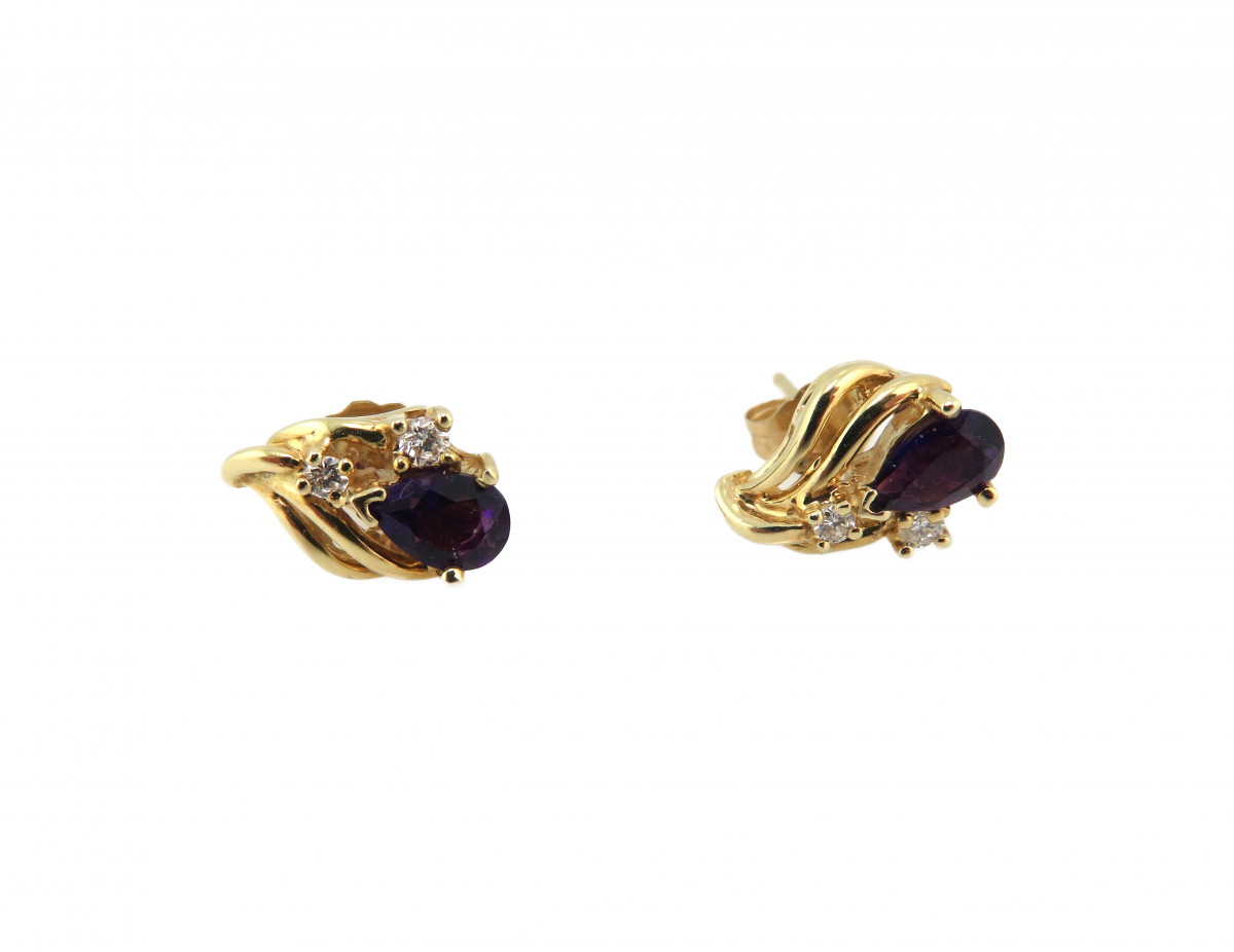 Pear shape Amethyst and diamond earrings in 14kt Yellow gold