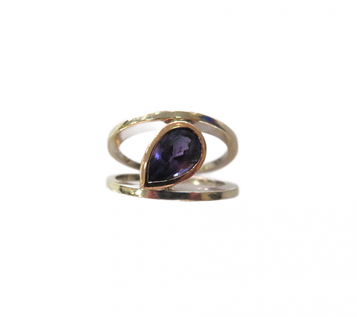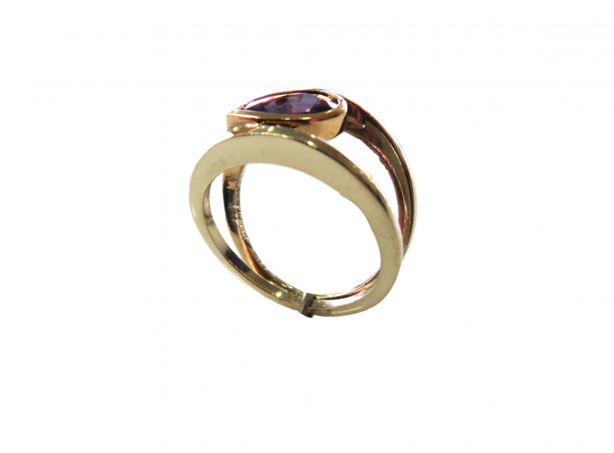 Pear shape Purple Sapphire in Contemporary two tone mounting