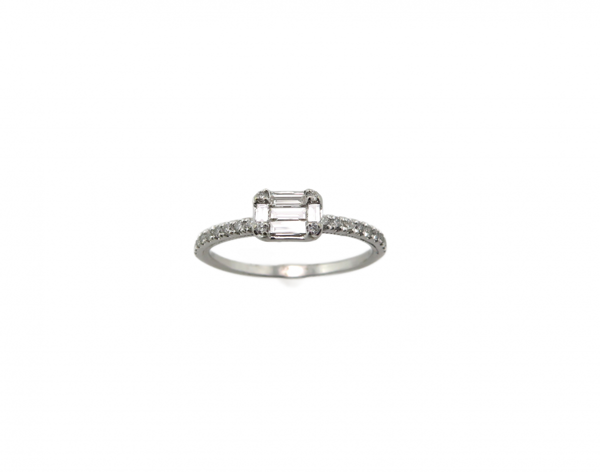 Petite white gold ring with Baguettes and Round diamonds, great stack able