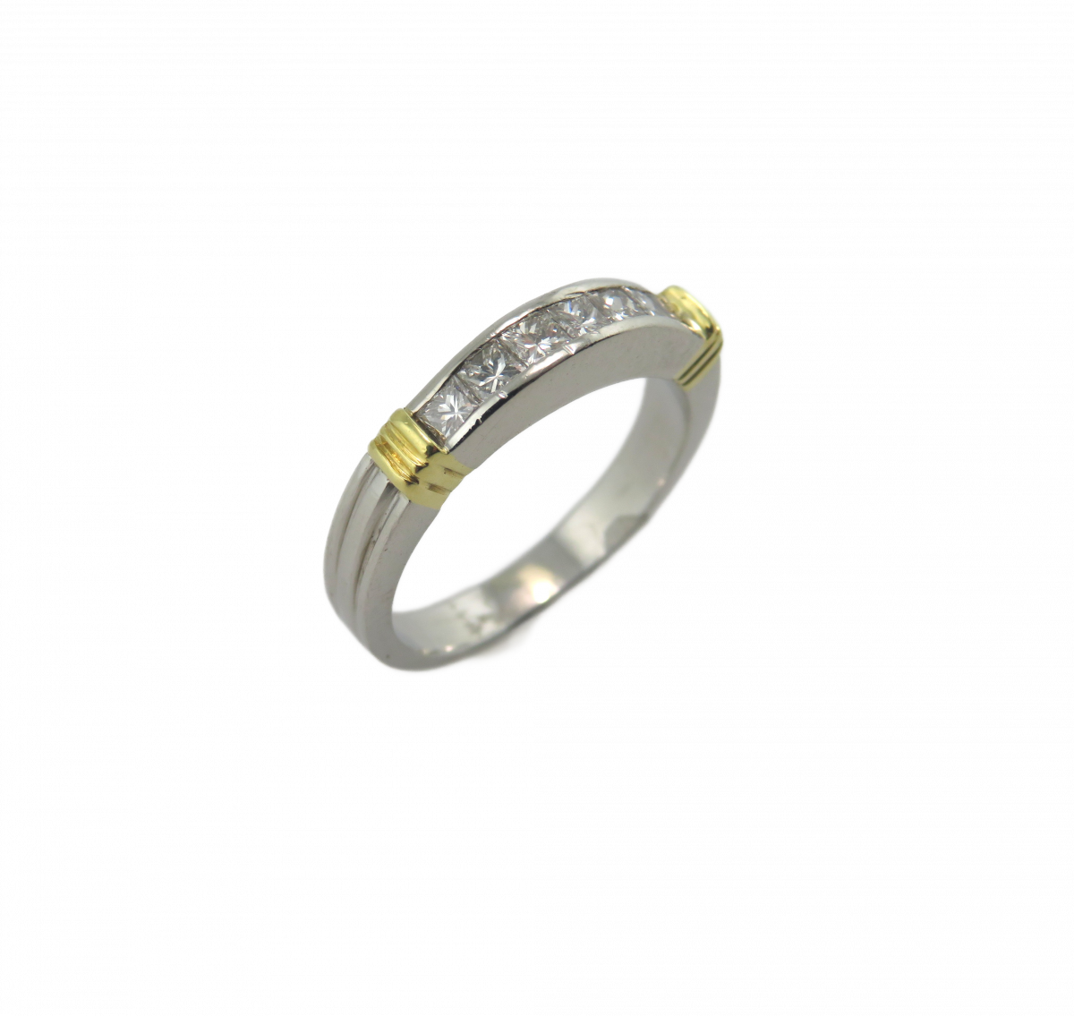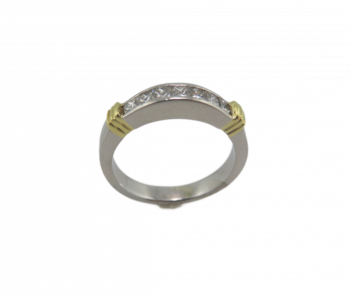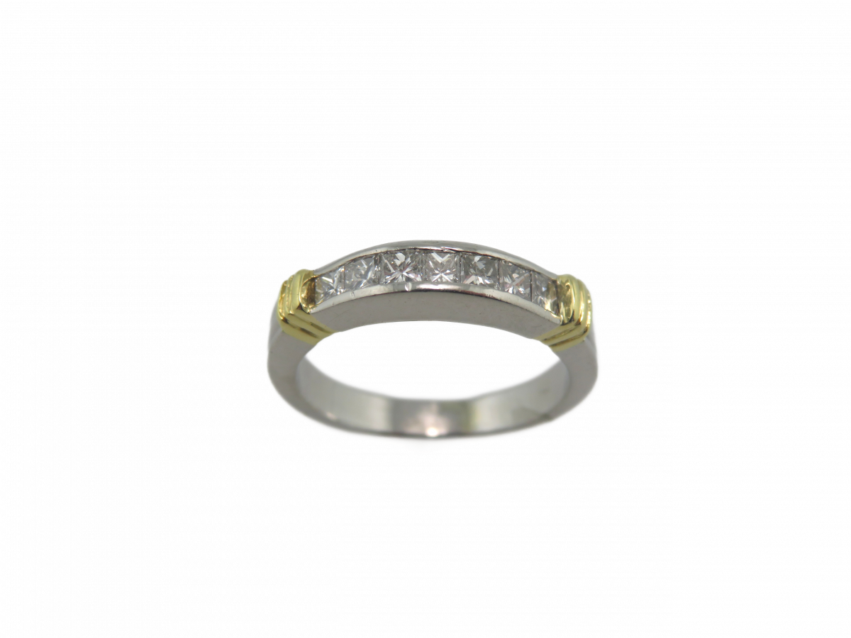 Platinum and 18kt Yellow gold Princess cut diamond band