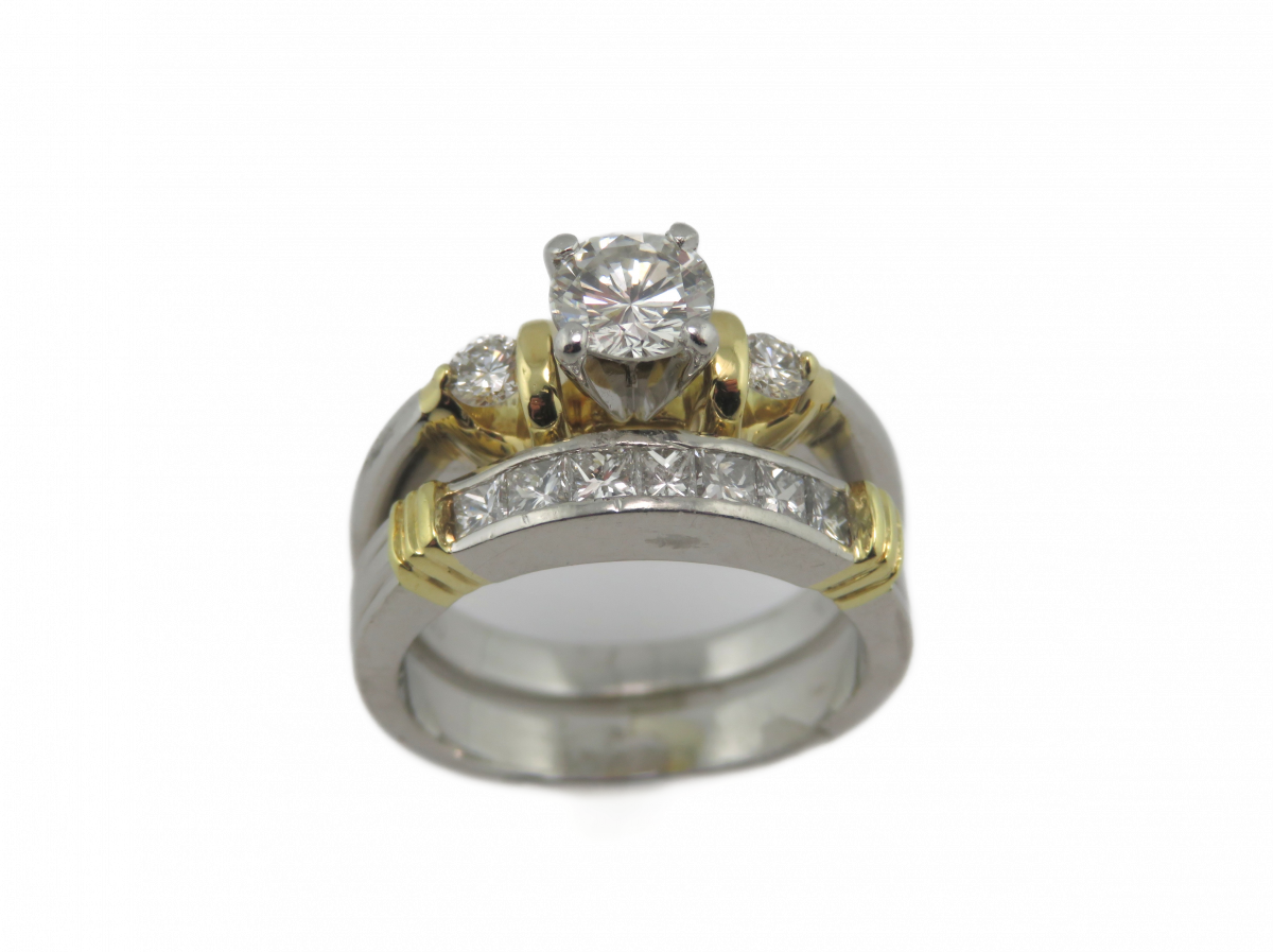Channel set in a Platinum band with 18kt yellow gold accents