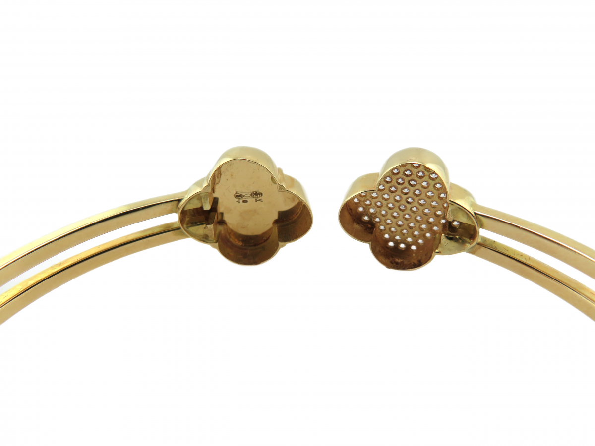 • Share "Quatrefoil Hinged Bangle in 18kt Yellow gold set with CZ’s" on Facebook