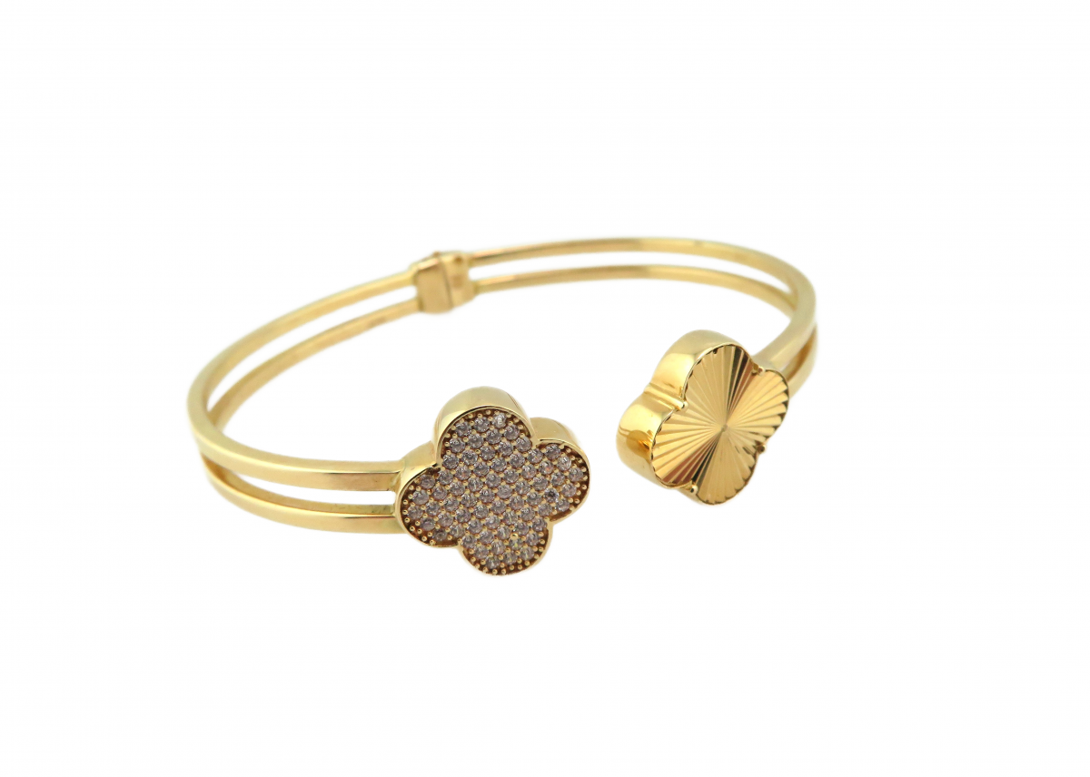 SKU: E23004815 Categories: Bracelets, Gold Tags: CZ's, hinged, quatrefoil