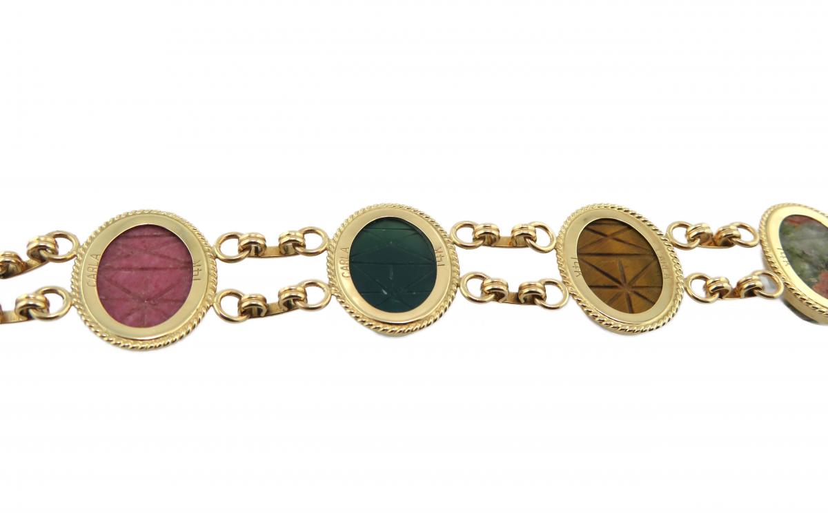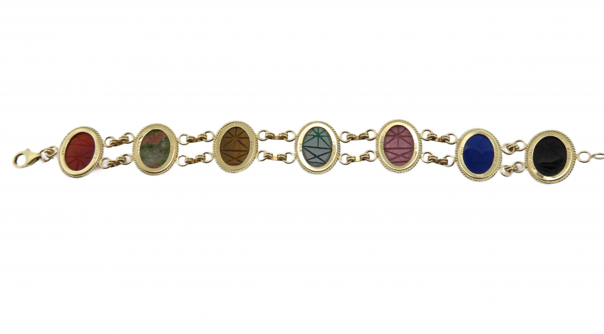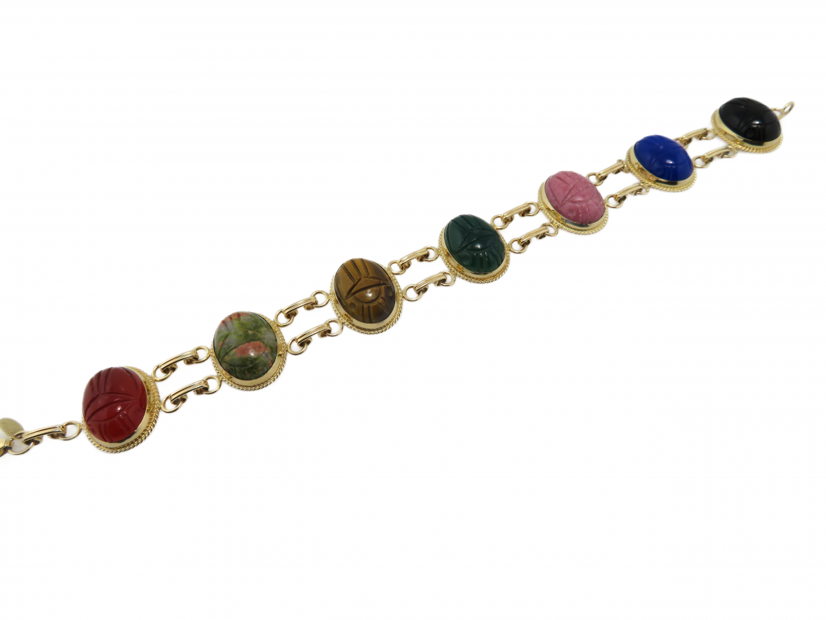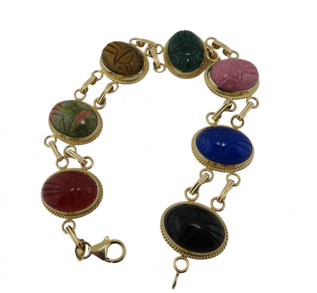 “Carla” Bracelet with 7 Gemstone Scarabs