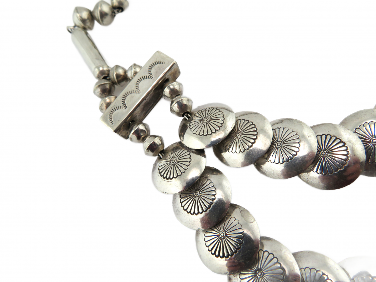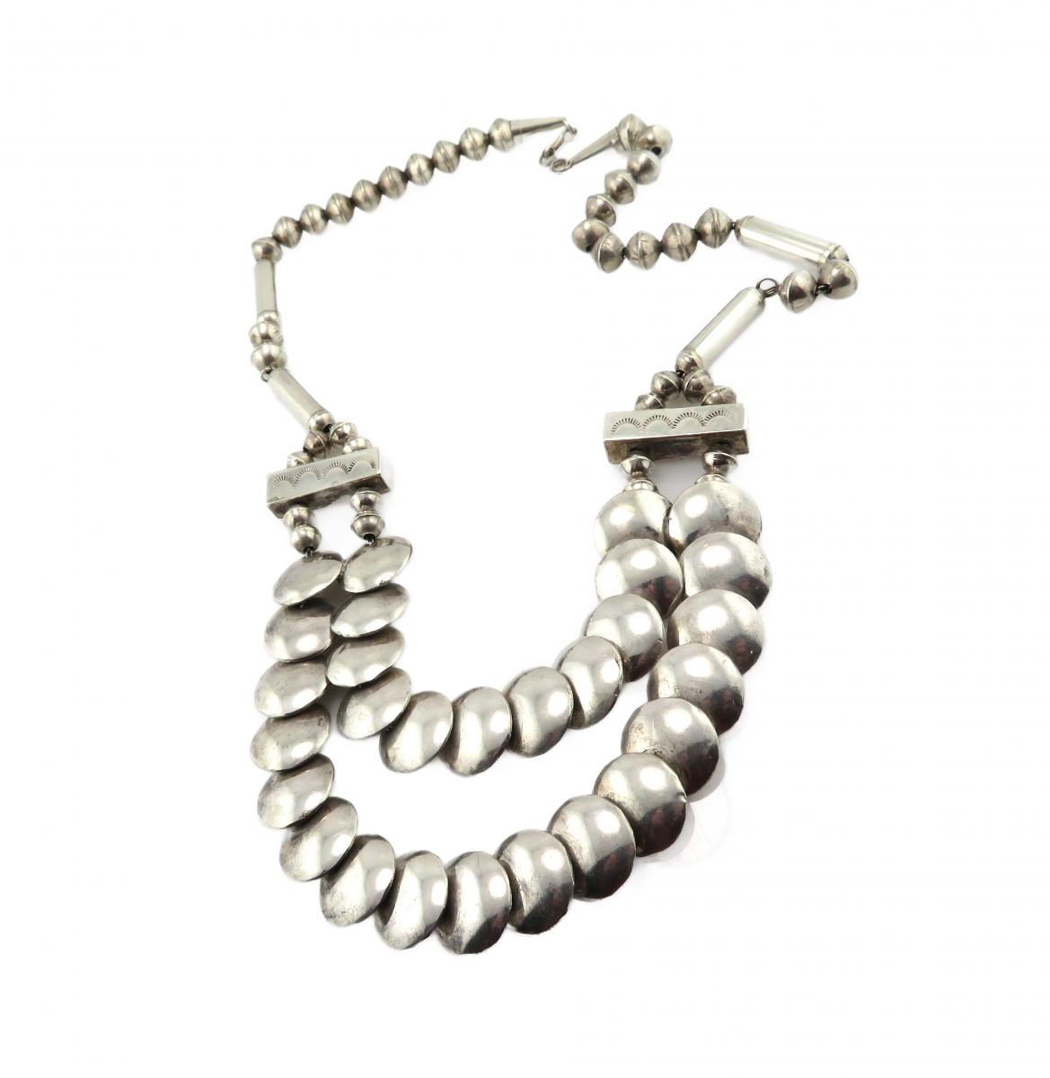 Sterling Double row stamped “Pillow” beads Native American necklace