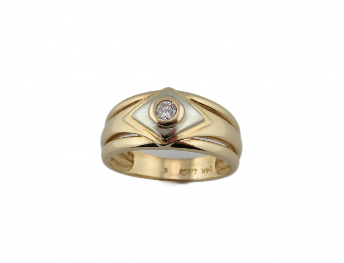 Two Tone Man’s ring with center plate set with .15 Round Diamond