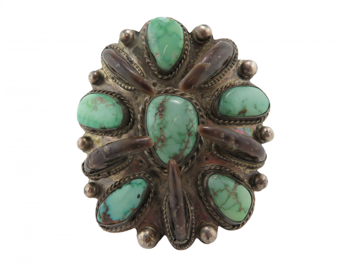 Antique Ceremonial Native American Bracelet with Green Turquoise and Bear claws