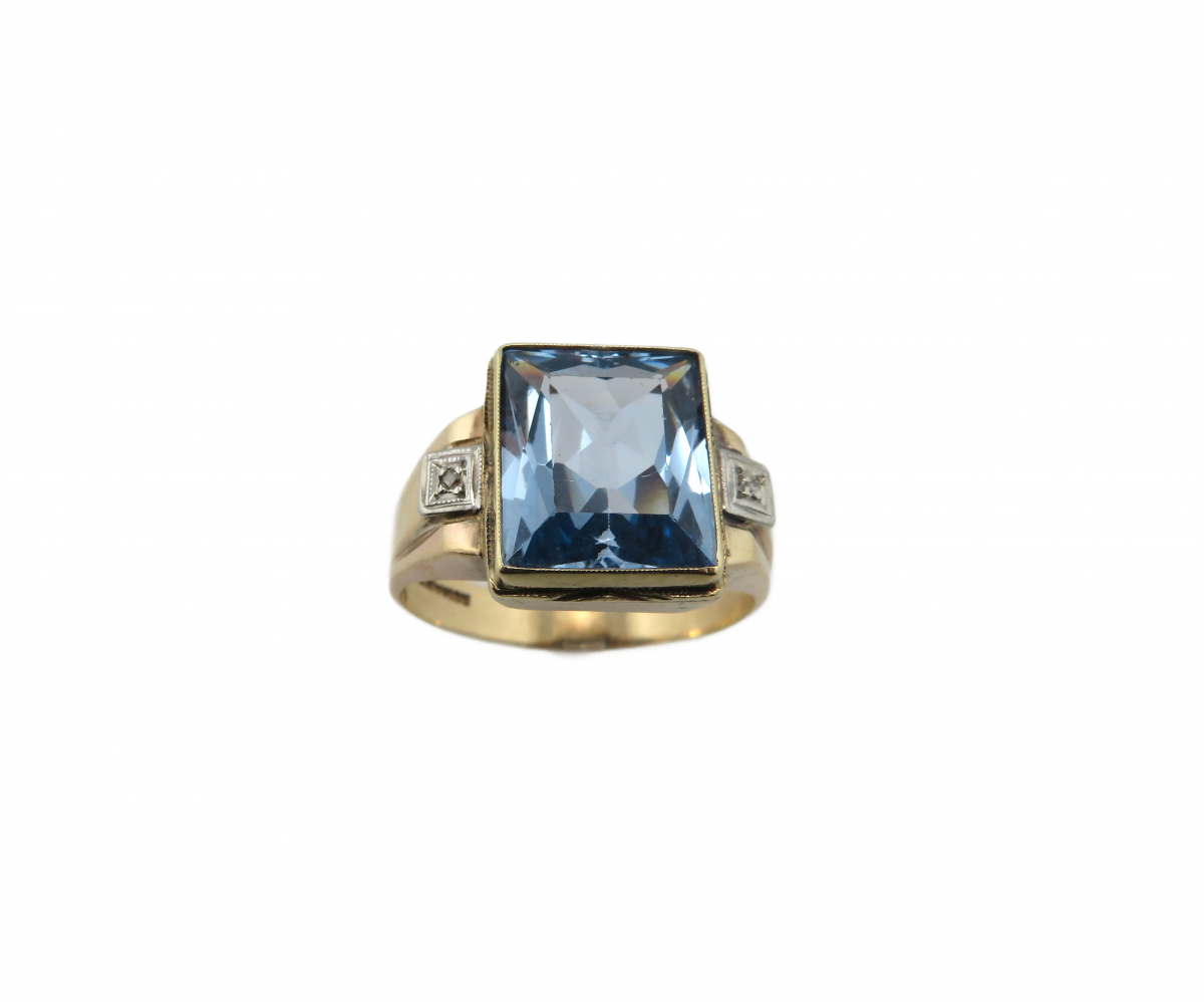 Vintage Man’s 10kt ring with Medium Blue center stone and diamond accents