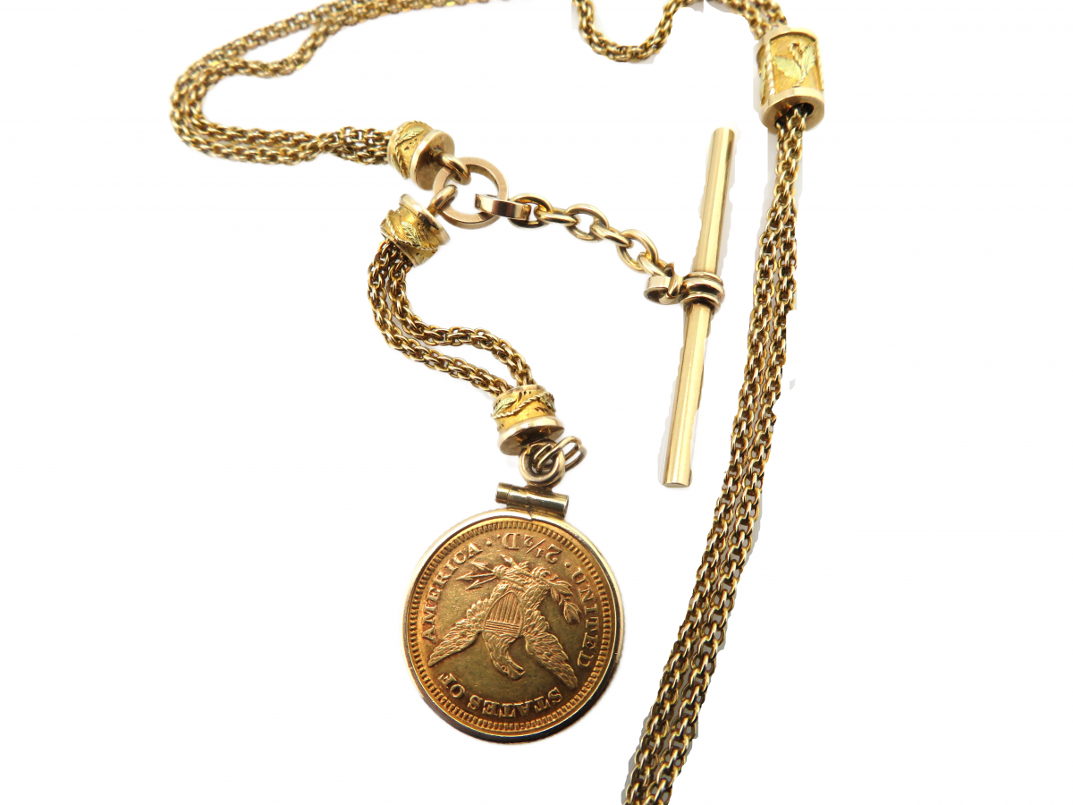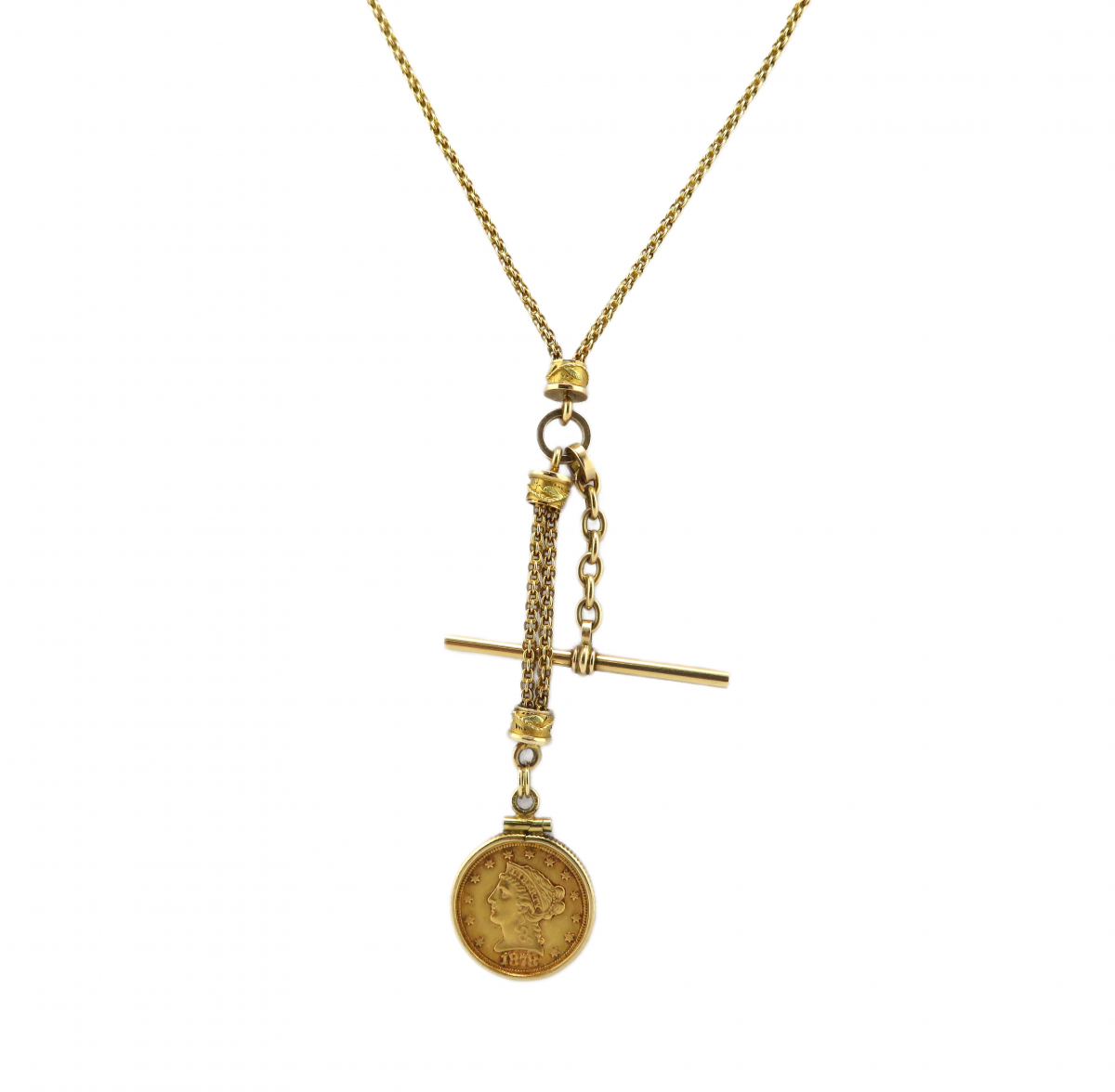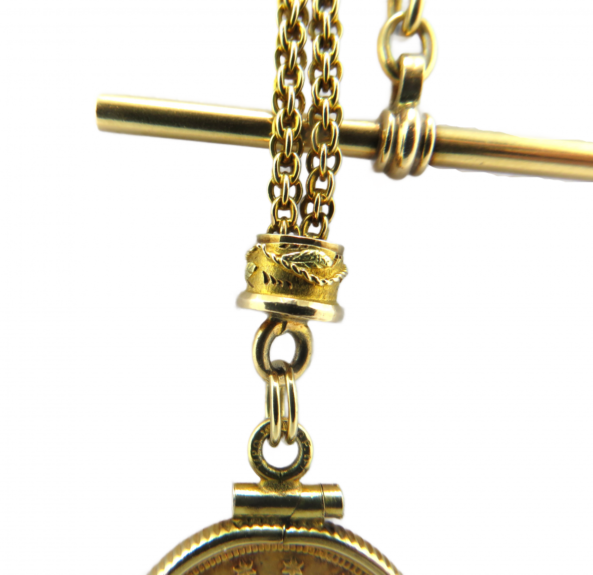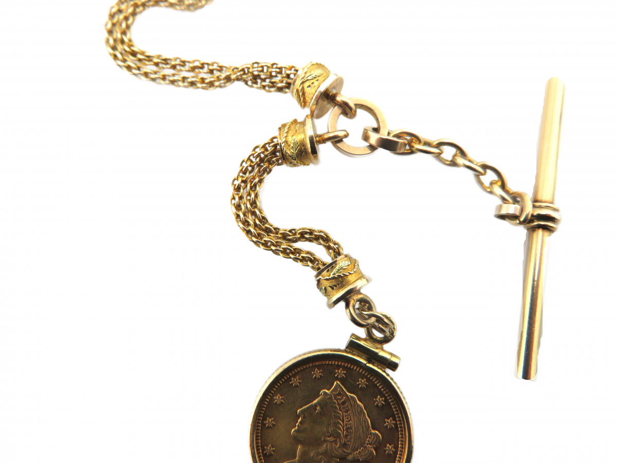 Vintage Watch Fob in 14kt with 1878 Coin and beautiful detailing