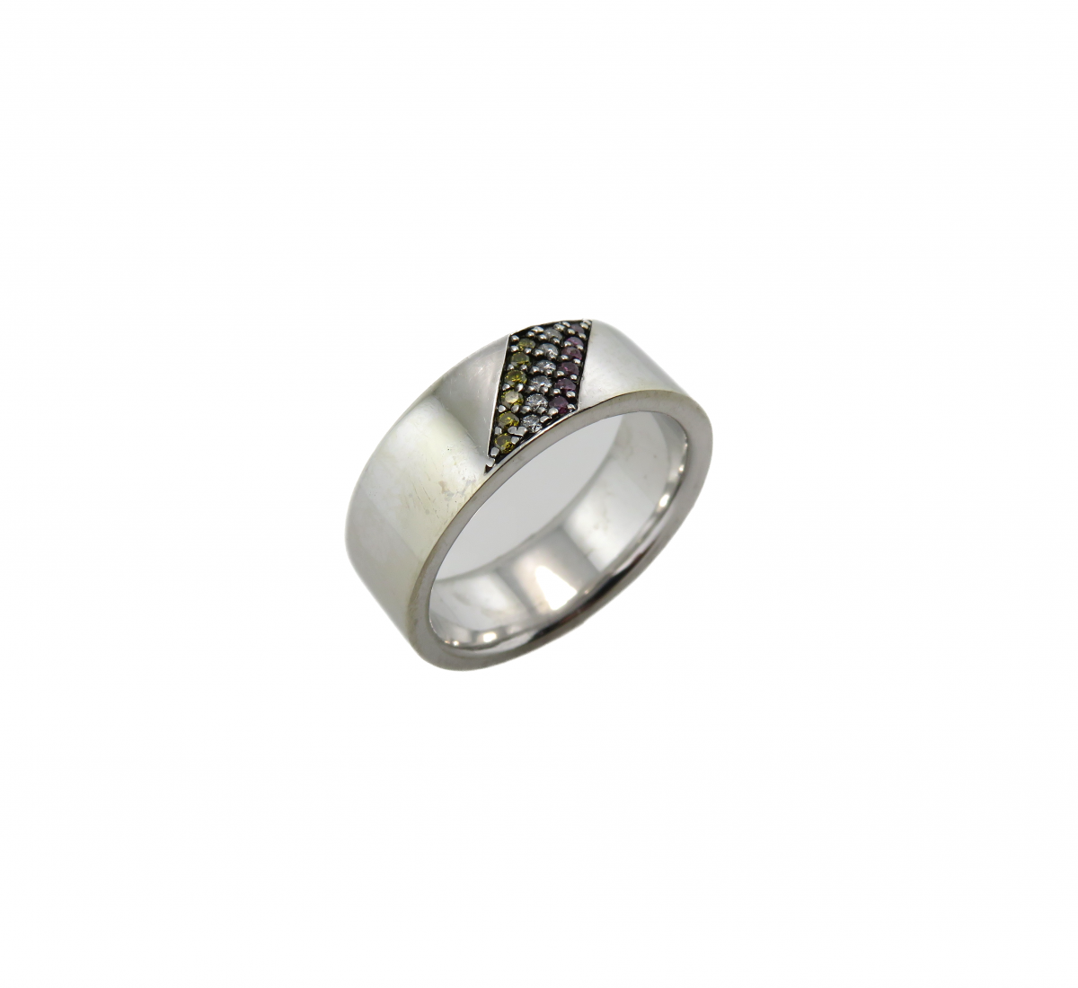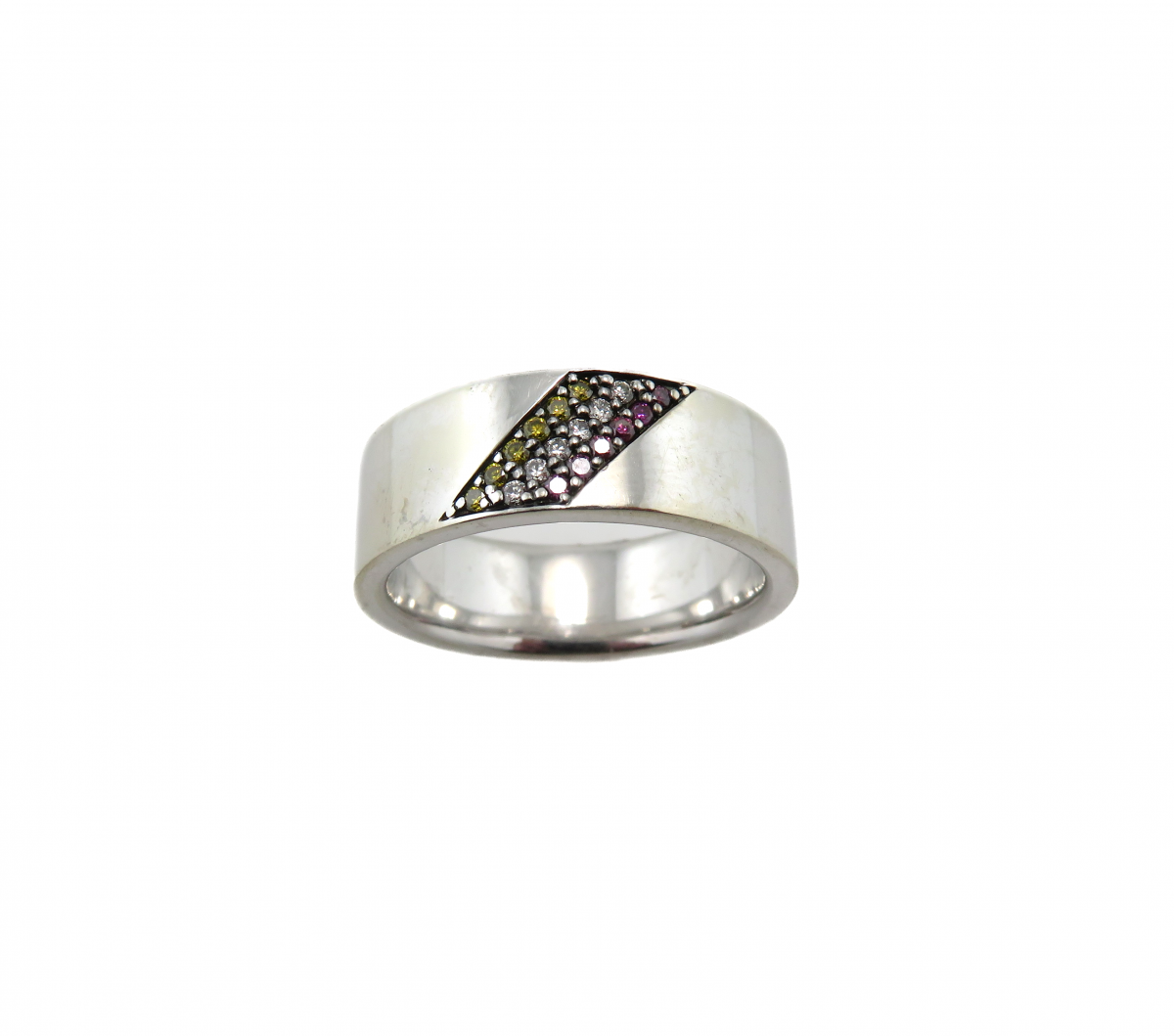 Home  Rings  Fashion  Mens  Gemstone  White gold band with Yellow, White and Red stones