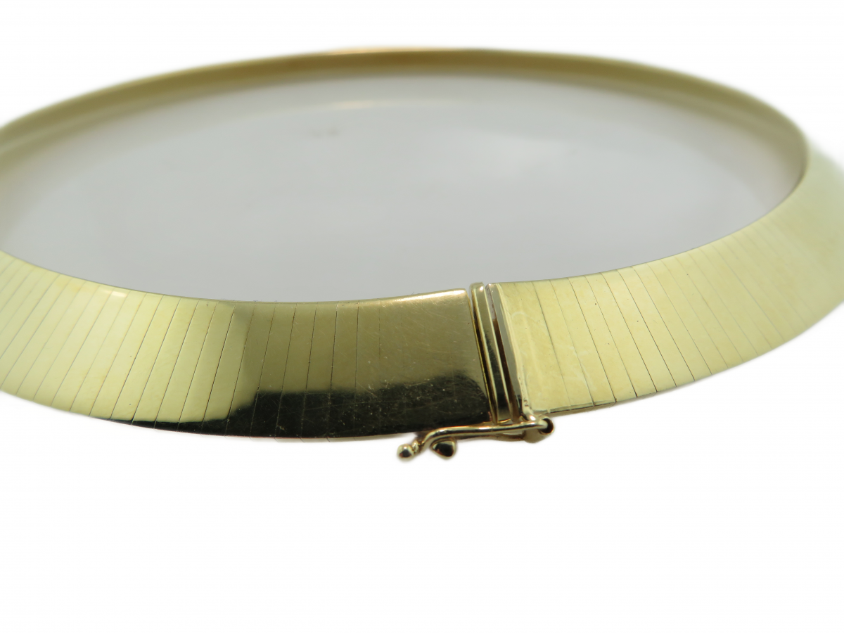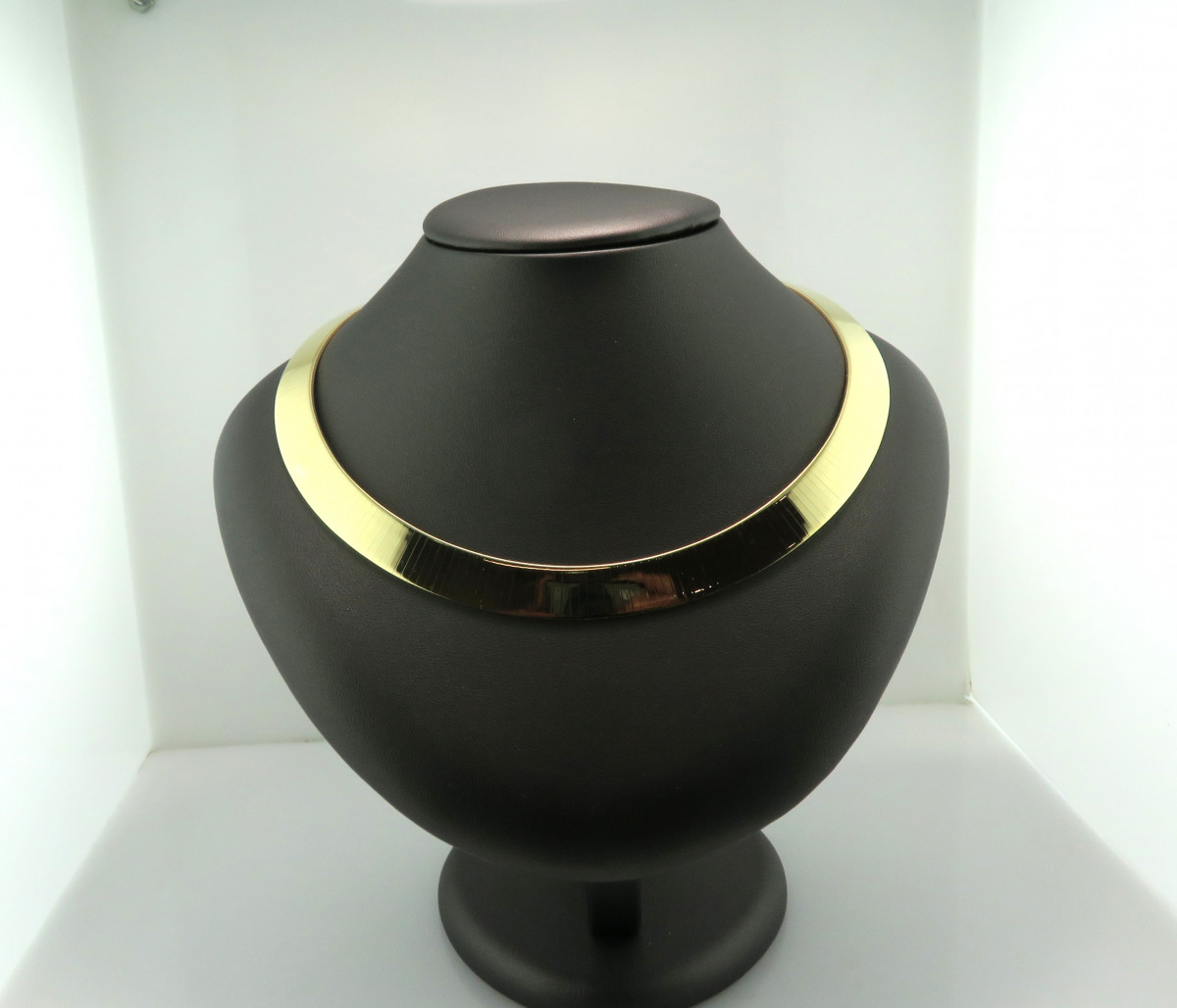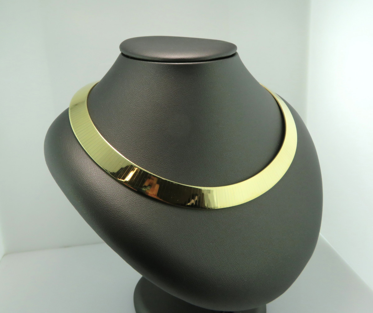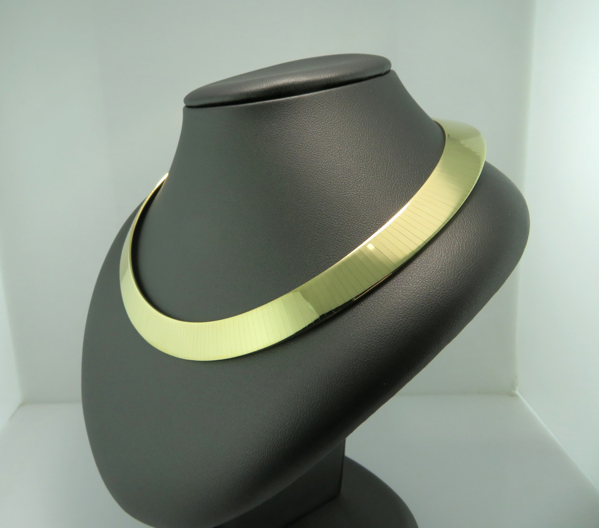 Home  Necklaces  Wide, Flat,Solid Omega Collar Necklace in 14kt Yellow gold